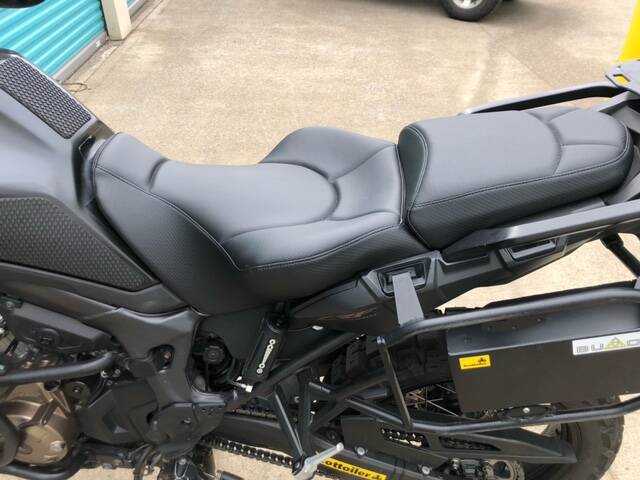 Seriously upgraded suspension, new Russell Day Long seat, Garmin Zumo GPS, Cyclops driving lights, Bumot panniers and racks, new ScottOiler, excellent dual-sport tires, new drive chain and sprockets, Honda Heated Grips, new Givi windshield, and the list goes on.