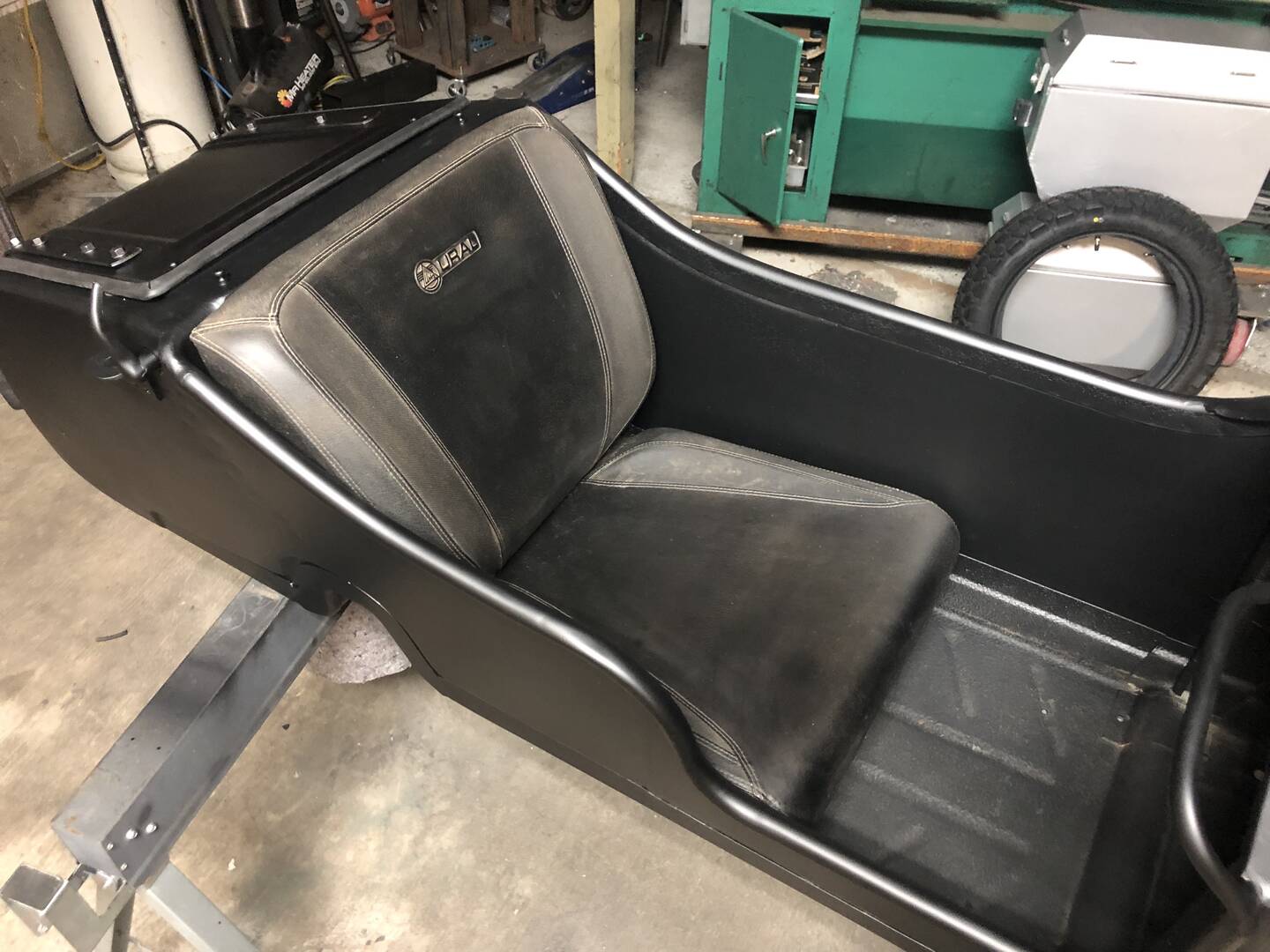 The seat is just one that he borrowed (stole) from his hidden collection of Ural bits.