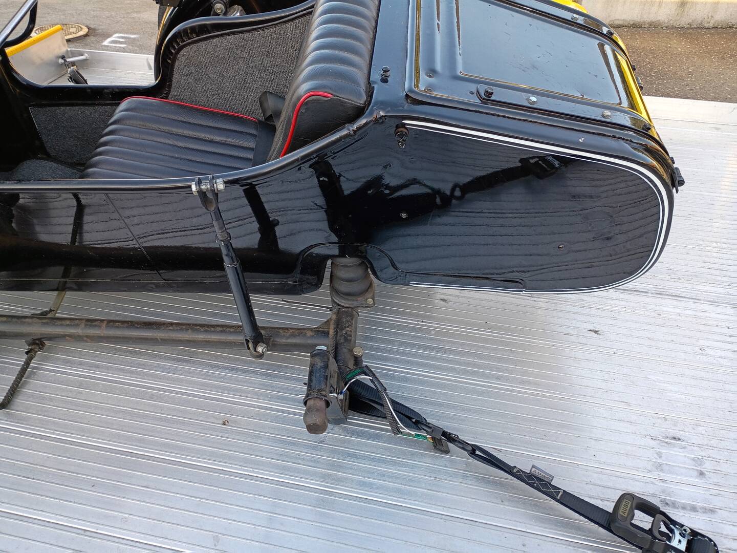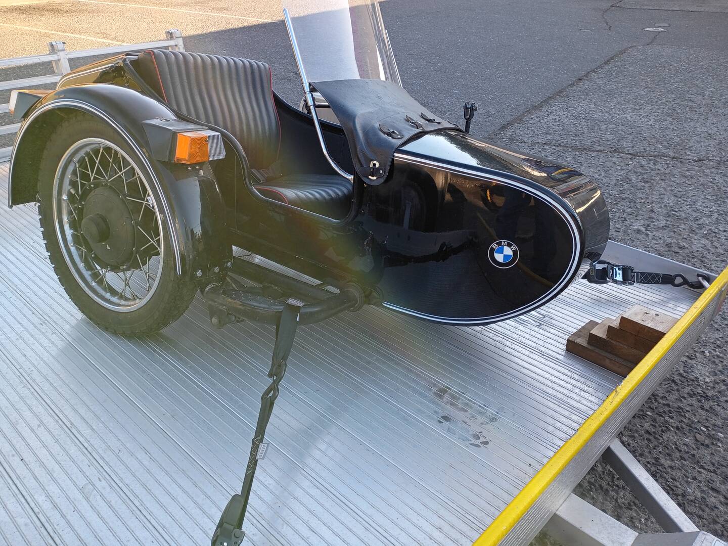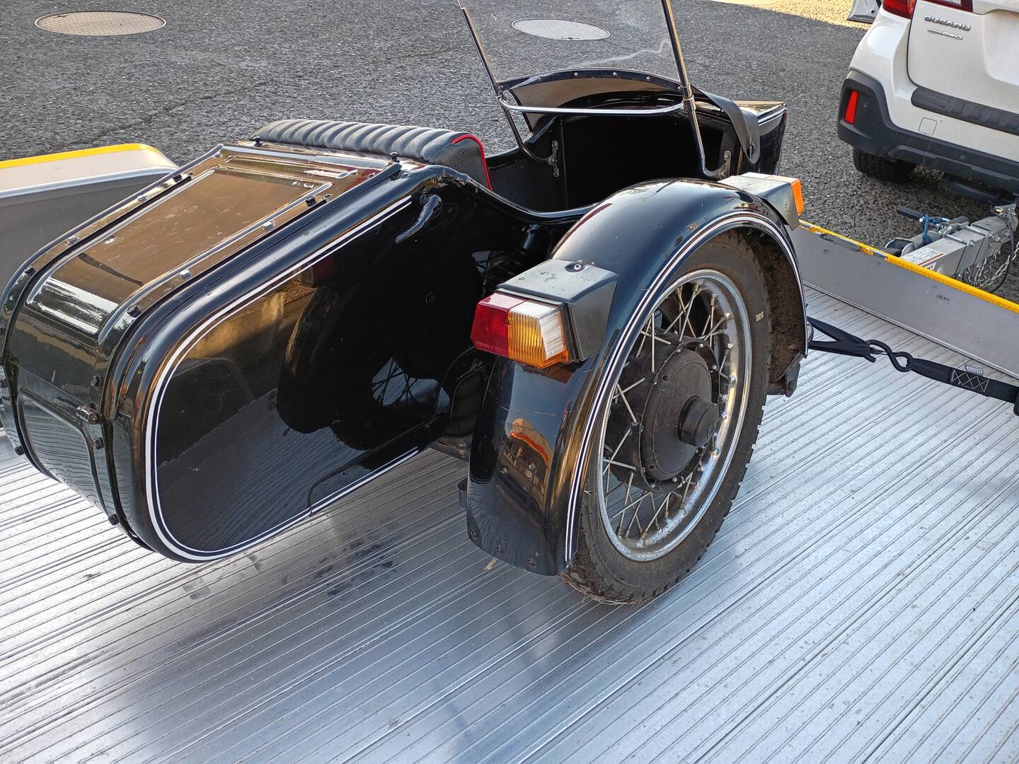 This is an older version of the Ural sidecar, and....hard to believe that this sidecar still has the original hand air pump in the trunk, also has a couple brand new extra light lenses, to replace any lens on the sidecar fender if they got broken.