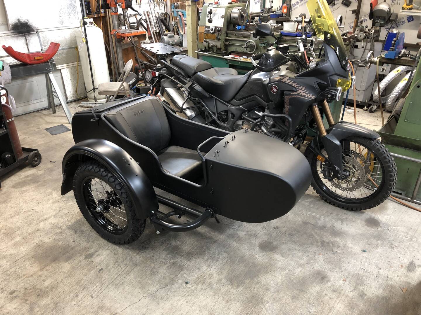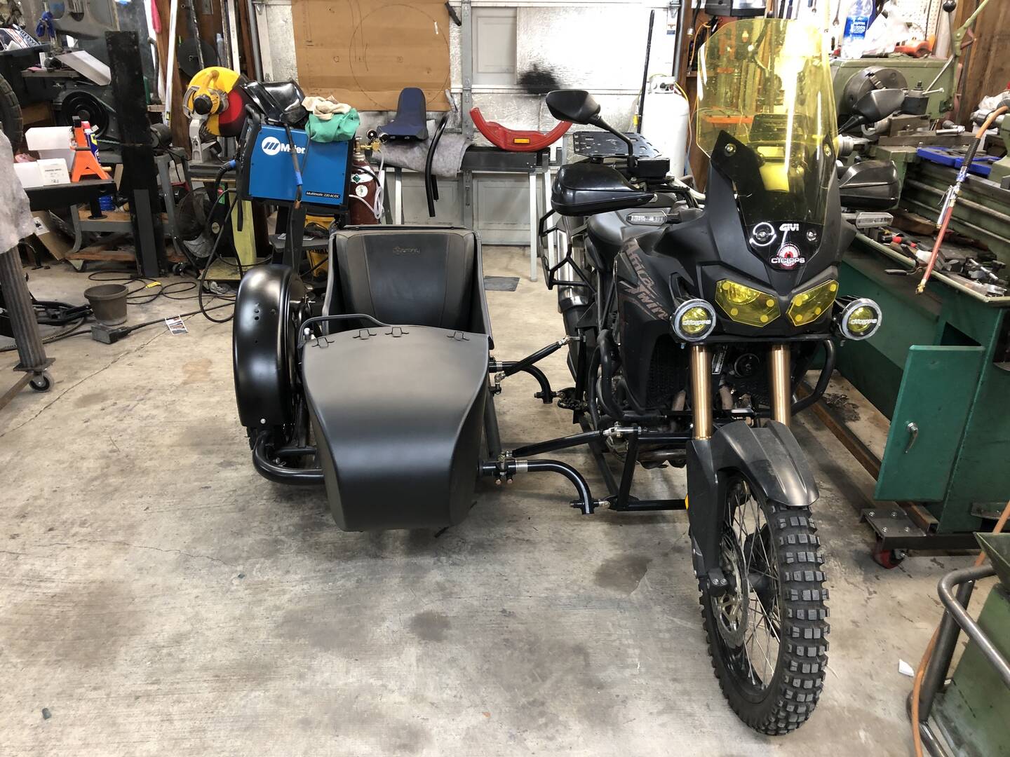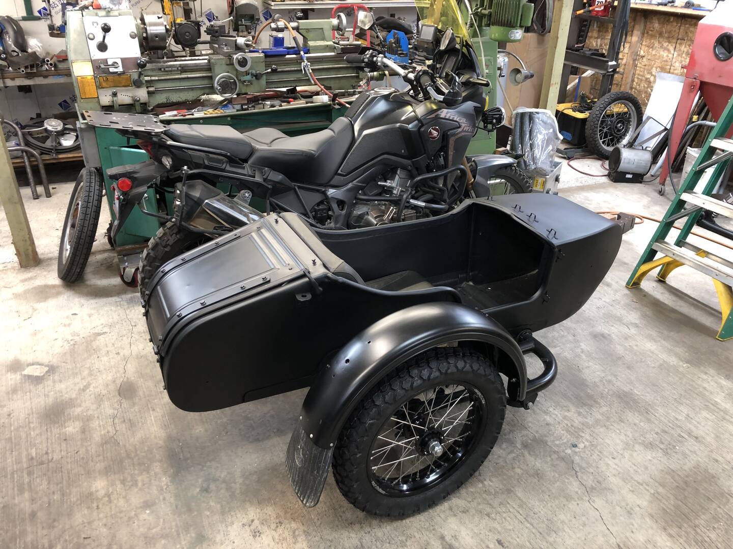 Just imagine that it is an Africa Twin sidecar rig up on my lift....and you get the idea.