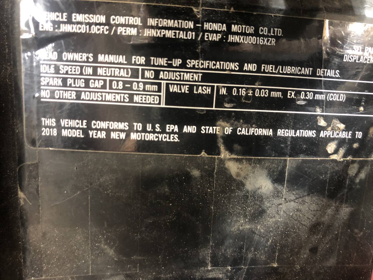 I had a request from a potential buyer from California, asking about the emissions sticker on this 2018 Africa twin, as to whether or not this bike is able to be registered in Cali....and the answer is YES.