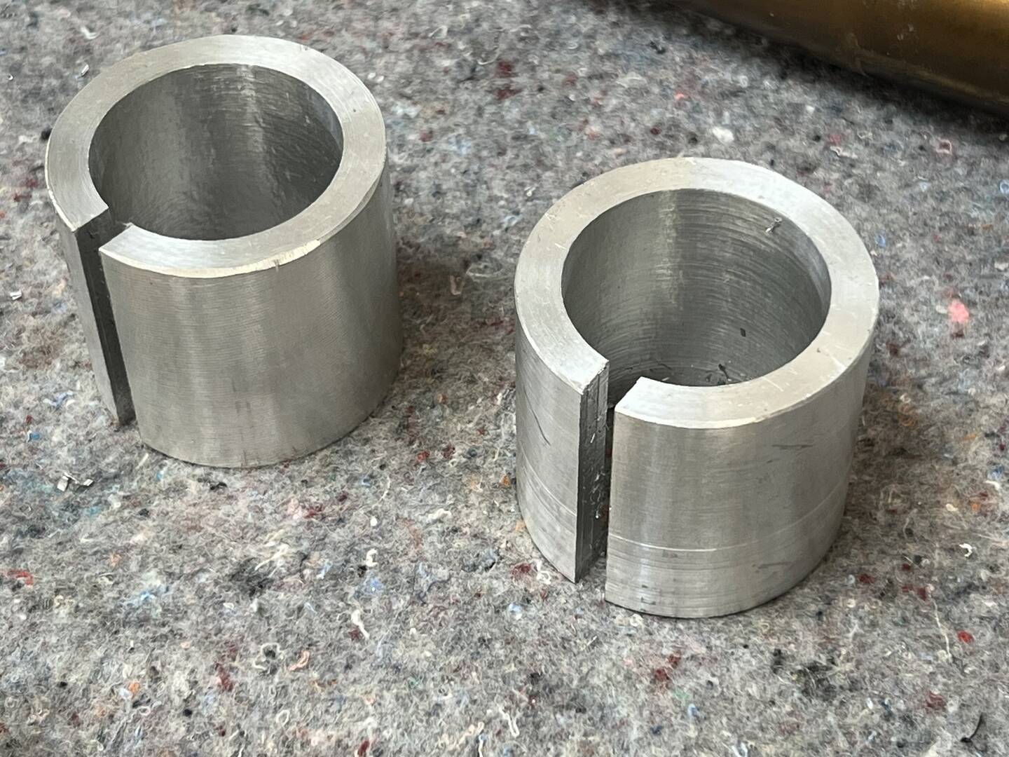 He needed to make these spacers because the ID of the lower triple trees is 60mm, and the tubing he is using for the legs of the Leading Links is 1.75" pipe, or close to 45mm, therefore the need for reduction.