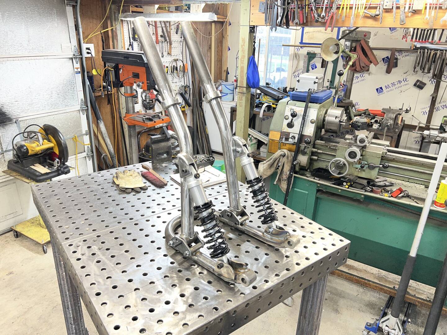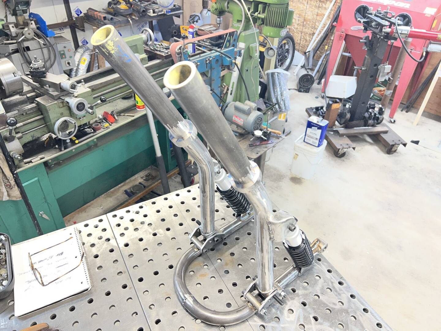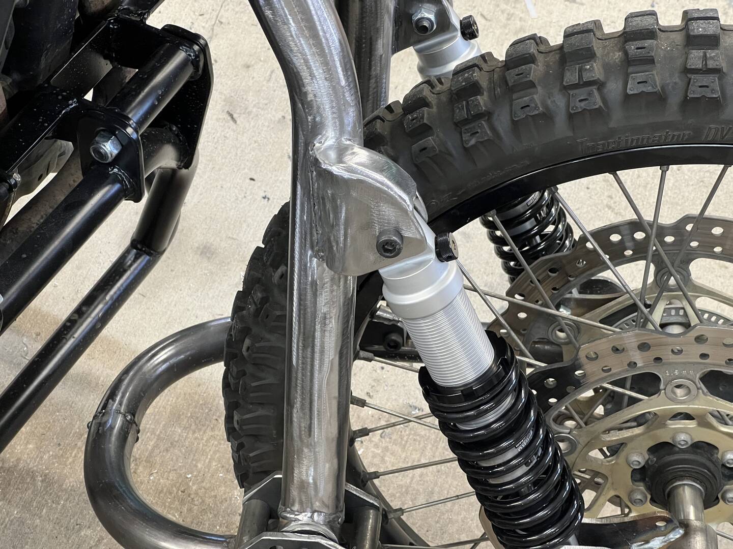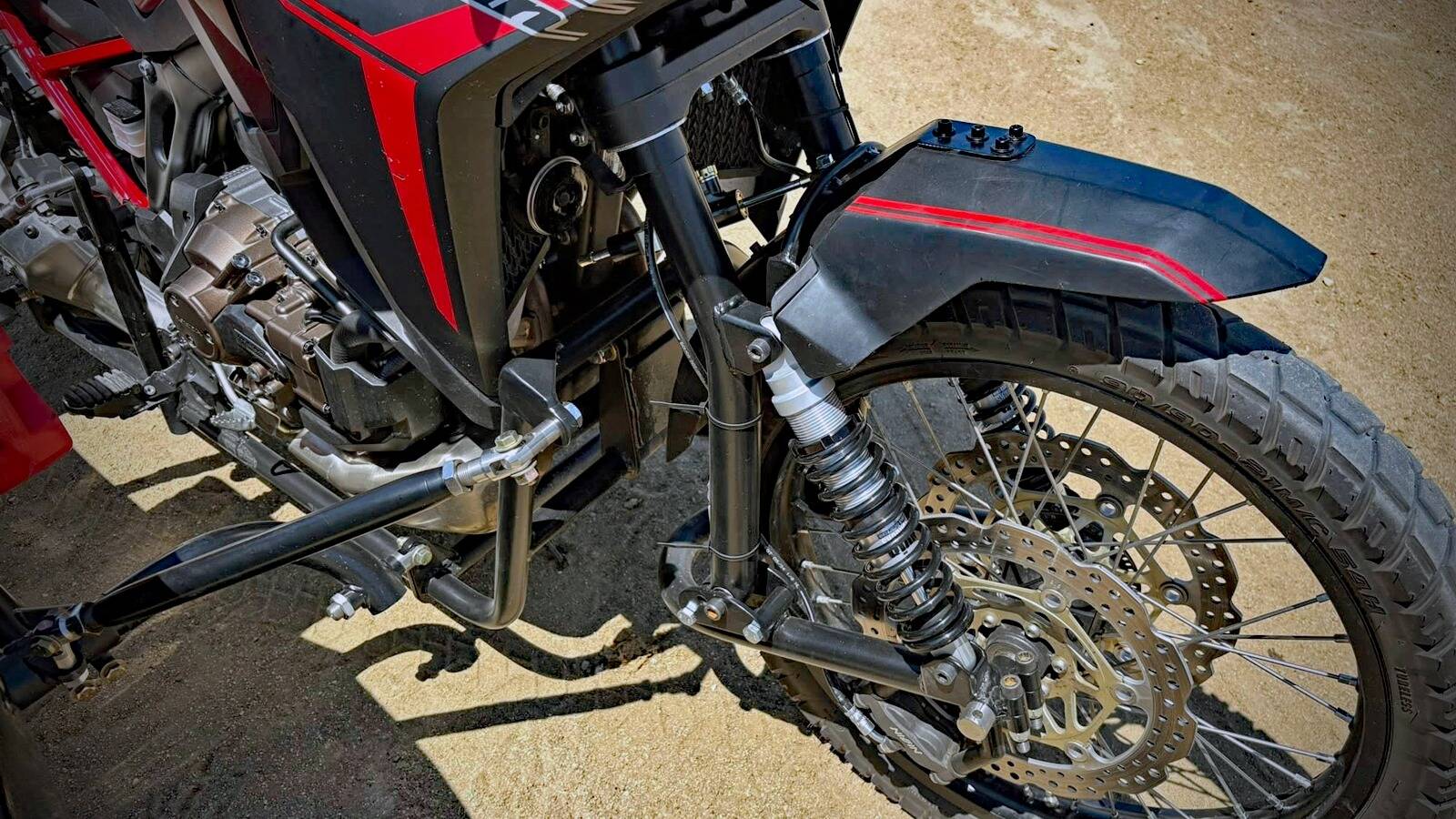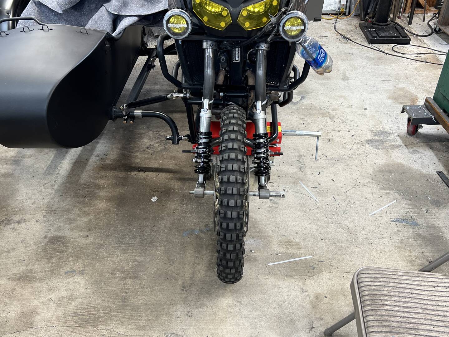 I had to appropriate these, or maybe misappropriate these pics from that "other" sidecars forums, as Chuck, da builda, is a member there, and at times he is asked about his work, so....his latest pictures of the Leading Link being built for MY Africa Twin sidecar rig.