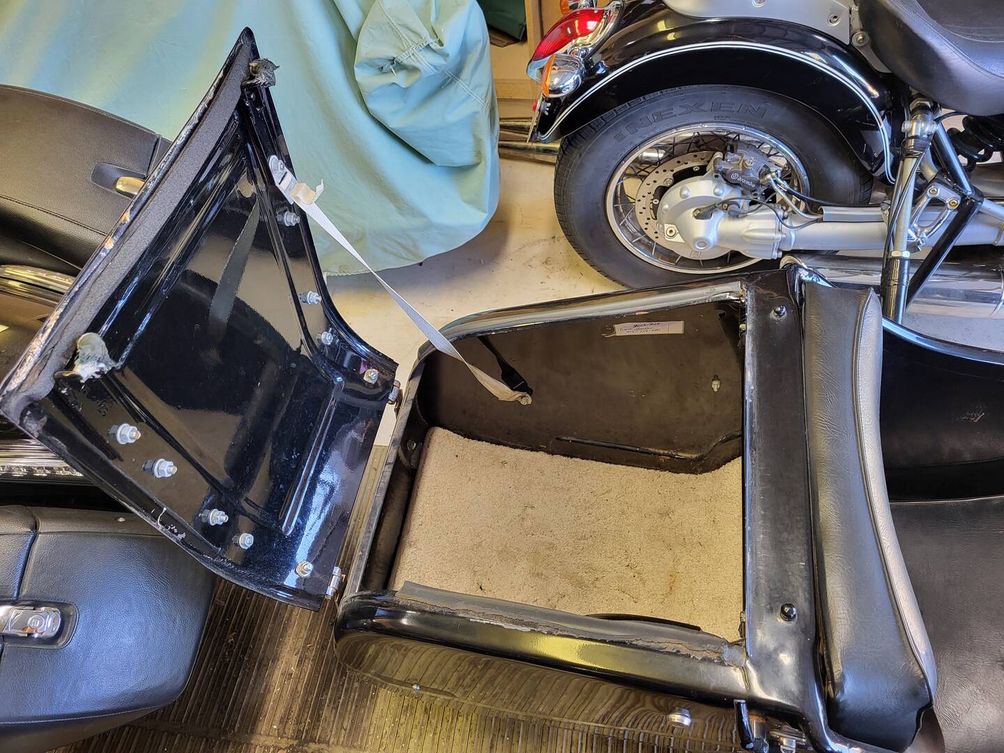 I confess that I don't know too much about this beautiful rig. I bought it at the very beginning of the year and have put less than 1,000 miles on it in that time. This is only the second rig I have owned, so I'm not an expert, but I can tell you it does handle very well and runs (and sounds) great. It had a tall windscreen on it that I removed, but is included. (I think I have a photo here with the shield attached). The headers are ceramic coated, to keep things cool. I have replaced the fork seals and have added a nice flip-up drivers back rest. (Most of the pics don't show the backrest as I just installed it yesterday). The bike has a car tire on the rear, as does the sidecar. I put a new (M/C) front tire on the bike just a few hundred miles ago. This rig starts, runs, and rides beautifully, but it's not perfect. The clock doesn't work. Neither do the heated grips. The biggest issue though, is cosmetic; the chrome on the rims is in rough shape.Ā