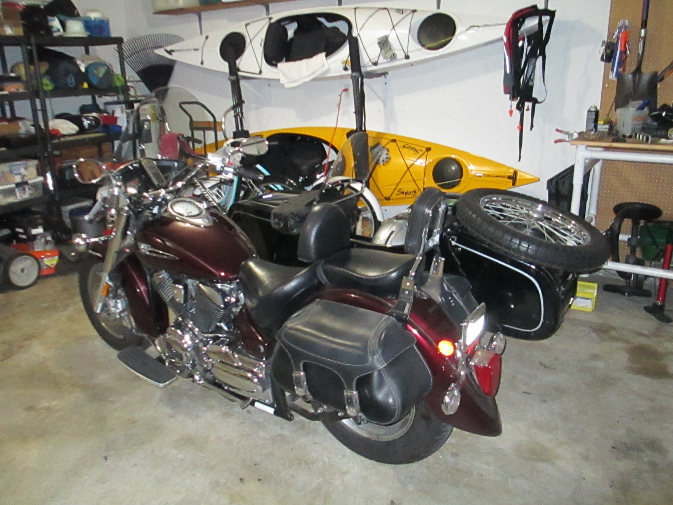 I have a 2007 Yamaha Vstar 1100 Classic with 12,000 miles, oil filter relocation kit, new tires(less than 150 miles on them), new tires and tubes on sidecar, fully dealer serviced recently. Sidecar is a 1970's(exact year unknown)Ural in great shape, no rust, no dents with chrome wheels including spare, brake and stop light with fender mounted white running light. Recently put this rig together using Motorvation quality mounting hardware. The bike is maroon and the sidecar is black with while pinstripes and windshield. Tracks well, gets about 30mpg( I use non-ethanol fuel). I'm asking $7500, clear title, located in Navarre FL 32566. You can contact me via email mayrel47@cox.net or 256-516-2135. My name is John. I'll attempt to attach photos.