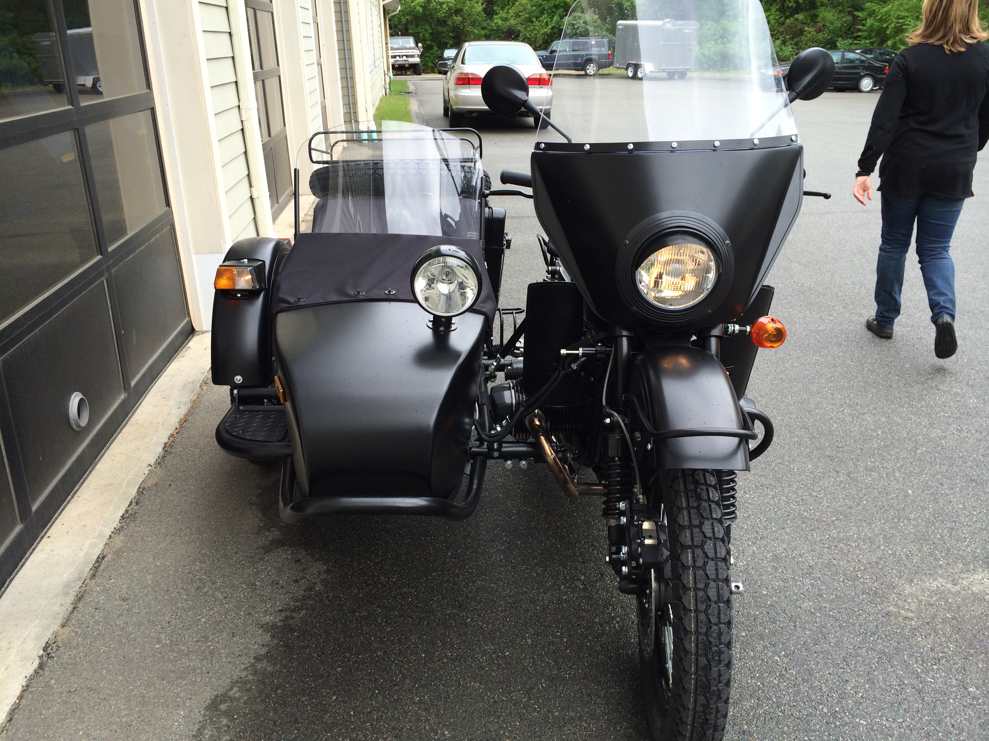 I saw the Gear-Up, blacked out with a flat satin finish and I loved it. Dimitry offered to take me for a spin in it and off we went. He lifted the front wheel off the ground and nearly gave me whip lash as he took off and with a great offer on the Yamal, I was sold . I love the Ural but I wanted a teensy weensy bit more speed and the gearing on the two wheel drive could not be upgraded.
