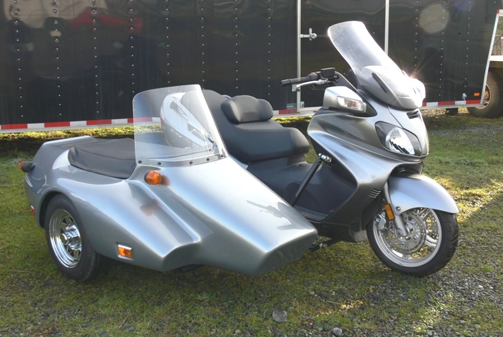 The Burgman makes a great sidecar bike, we have done many and offer proper bike specific NOT universal mounts for the bike. We normally go with our least expensive sidecar we build the Kenna single. I have attached photo's