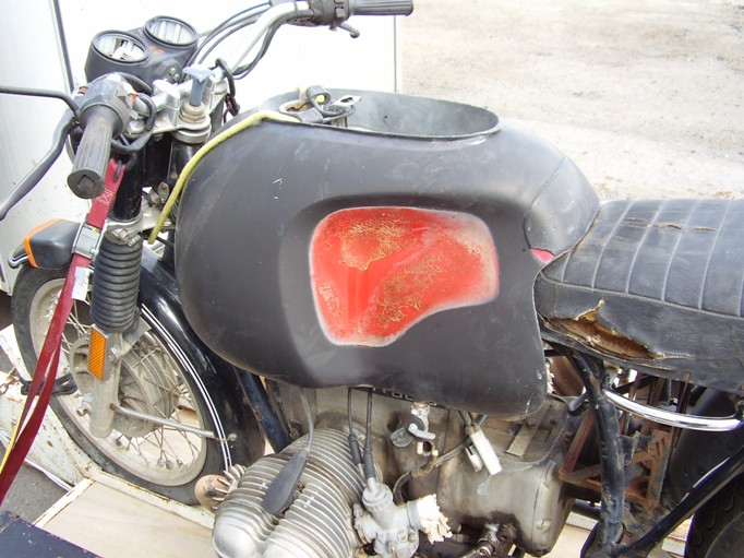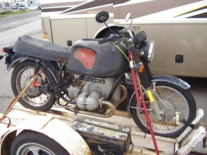 I recently placed a Craigslist Ad looking for a BMW parts bike. Kind of a fishing expedition as I really didn't have anything in mind. Low and behold a gal called me and said she had bought her boyfriend a BMW project bike and he peeled on her. She said she had $100.00 into it and was hoping to recoup her cost, but would take anything I was willing to give her. She knew nothing about the bike. I figured for $100.00 there had to be that much worth of parts no matter what it was. I bought it sight unseen. She finally sent me a photo a few days before I went to retreive the bike. ( I live 300 miles away) This is what I got for $100.00.