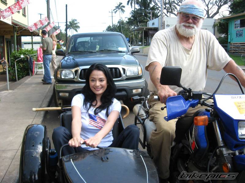 One is a DR650 tugging a Ural hack that is offroad capable but licensed for the road.
