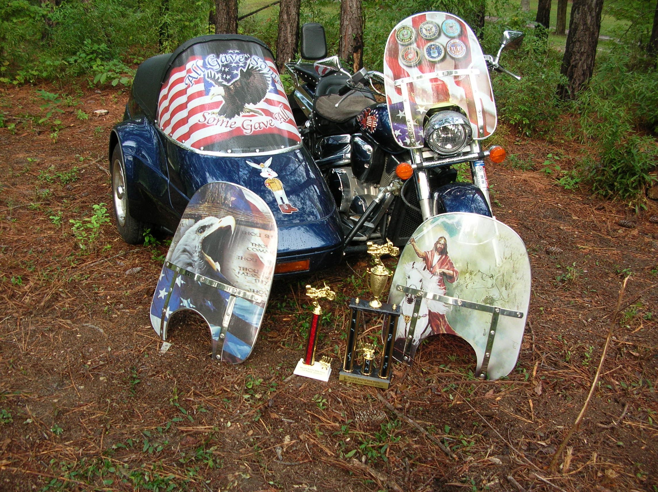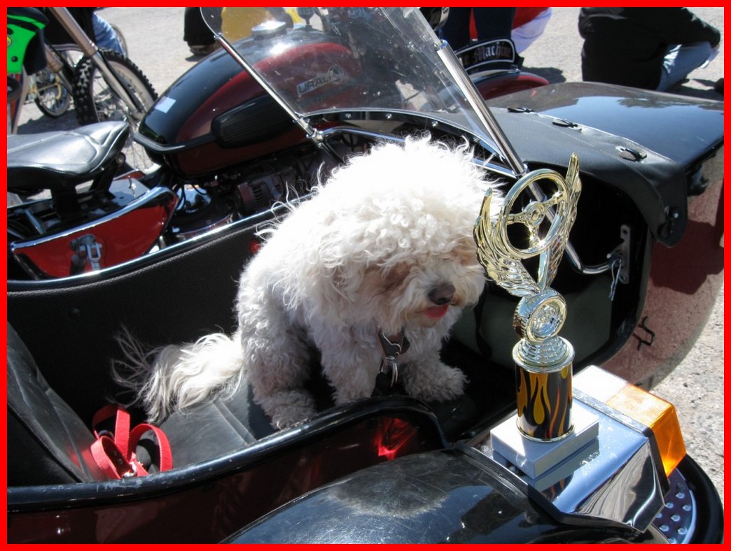 Congrats on the win. Murph, my dog, and I went to a local church car show in Abilene a couple of years back. The fellow with the super sharp trike next to us spent a good hour in preping the thing for the show. He roped off everything around his ride and made sure no one could touch it, after unloading it from his trailer that was every bit as costly and spiffy as his trike. Murph and I didn't even know the show was in town, but had simply ridden by and were flagged down and encouraged to participate. Well, the Troyka was dirty as heck and we had not time or inclination to wash it. We just got our participation number and drove in and parked. Guess who won? Yup, Murph's first trophy. The fellow on the trike got nothing, but sure got ticked by the end of the show. Murph and I had a blast though and his trophy still has its place out in the garage. We've won a time or two since then, but nothing is as much fun to remember as that first win. Again, congrats on your win.