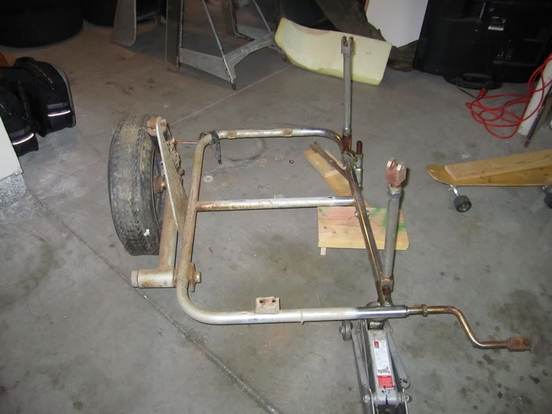 The shock is shot like I stated before. Does anyone believe that a Honda CB500 shock will work on something like this? I have one lying around that's why. Also I'll need a better way of mounting the tub to the frame. Maybe even lift it up a little. Originally it was mounted with 4 bolts and on a stack of washers in the rear.