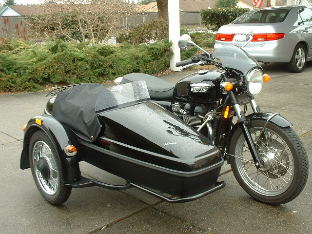 There are pluses and minuses to any sidecar choice. I was told that the Velorex is really too light for the Bonnie. Light means better mileage; but the downside is trickier handling. I keep five gallons of water as ballast in the Velorex for me and I put eight gallons in as ballast for my wife. I do agree that the Cozy is on the light side; but it is definitely doable.