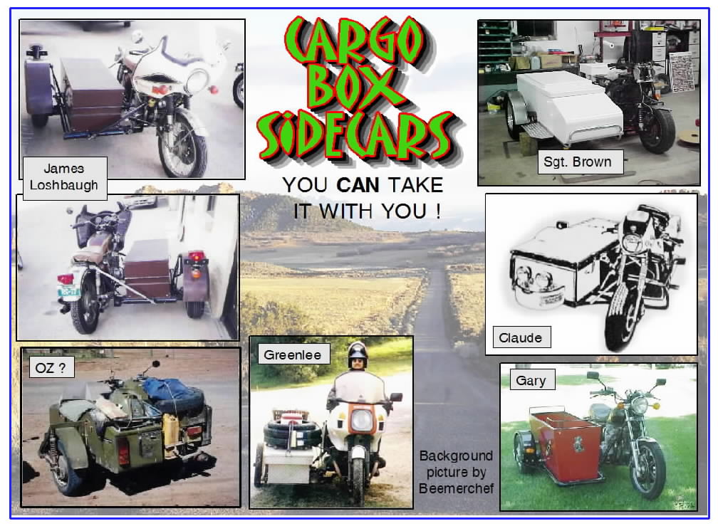 I totally love the cargo type sidecars. The designs of them can be from a simple truck box to a one off box built for specific needs or combinations of needs. The designs are only limited by the owners vision and what he or she intends to use the sidecar for.