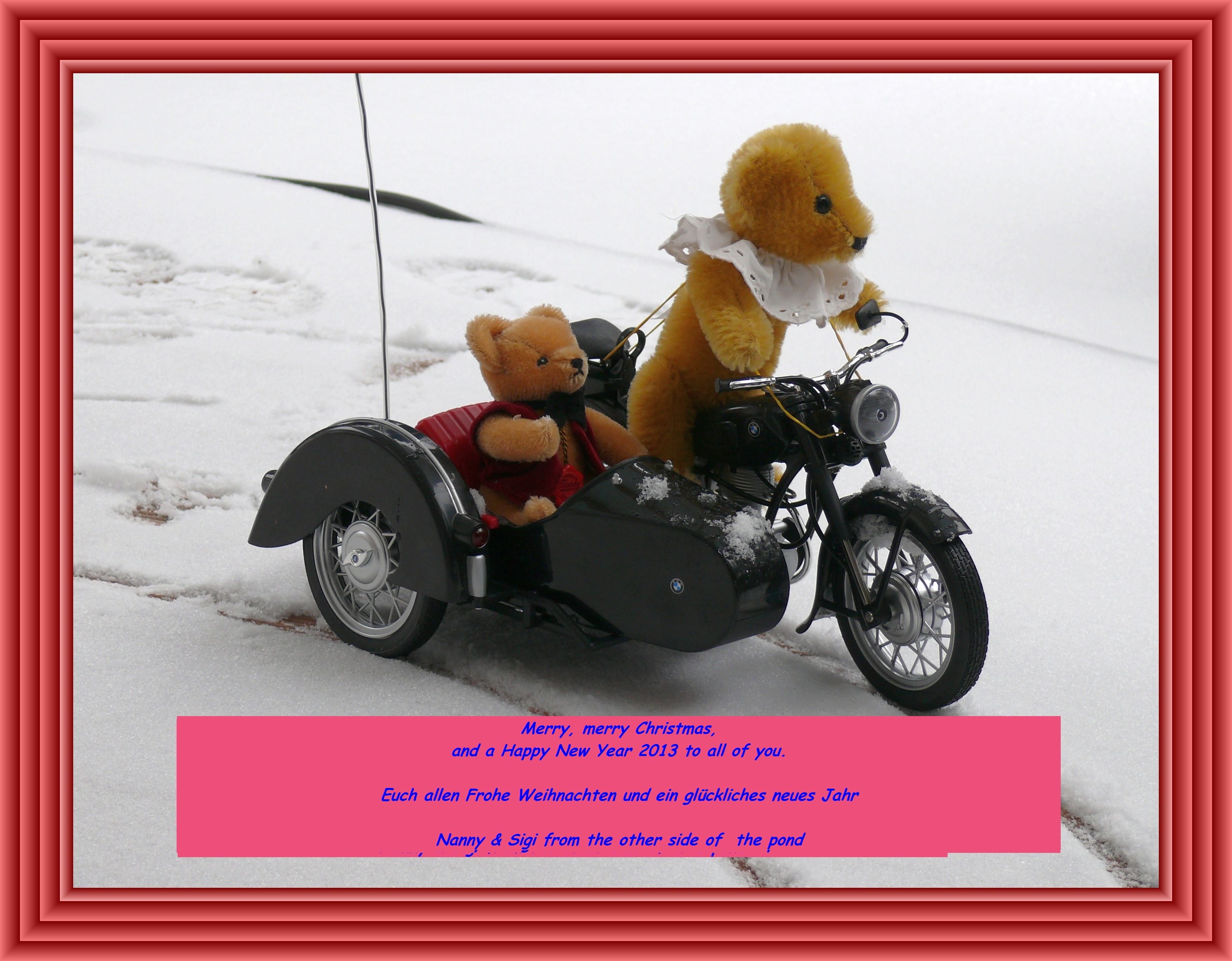 We wish you and your families as well as the entire team of UNITED SIDECAR ASSOCIATION a merry Christmas and all the best for the year 2013, especially health and zest for life.