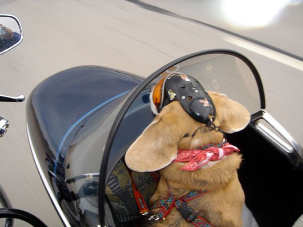 Dogs make a sidecar look good.