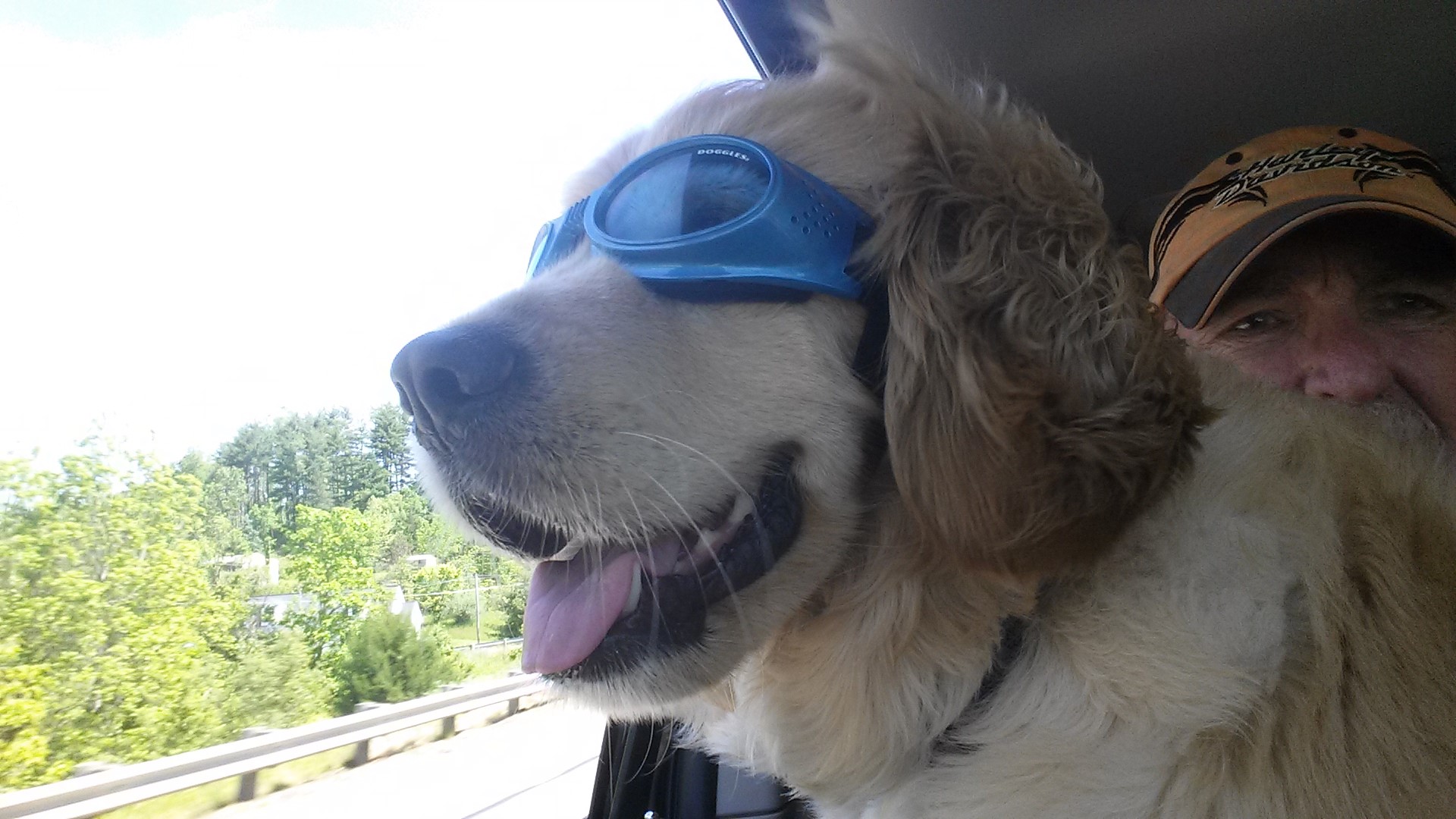 In March this year I ordered a Motorvation Spyder to fit my 2005 Road Glide for Murphy, our Golden/cocker mix. We think he may have been a lost Dakota Sport retriever breed.... Half Golden, 1/4 American Cocker, 1/4 English Cocker. He was 8 weeks or so old, lost and found in IN. He's found a home and a new avocation.... Got him Trike Broke in a bag early and working on the solo seat by way of a Red Wagon. Next month Motorvation is supposed to have our hack ready to install.