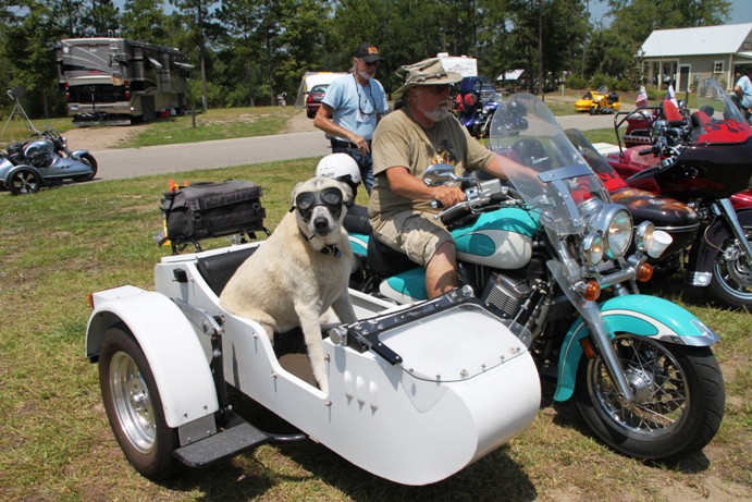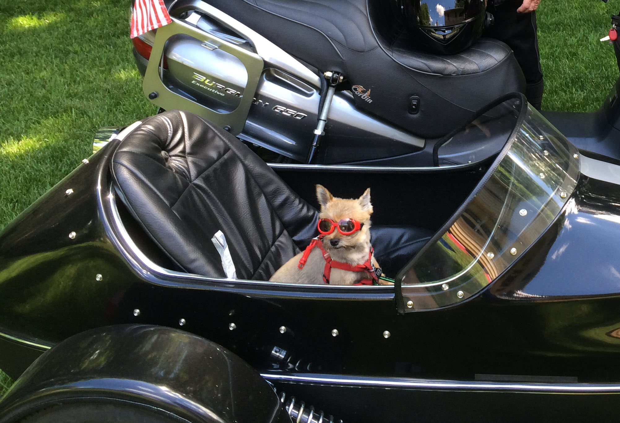 I'm jealous. Our 16 lb guard dog doesn't even really like to ride in the car. Have no idea why. When we travel, she jumps into the car by herself and settles down for a loooong nap. Put her in the sidecar once and she simply jumped out. She definitely has a mind of her own.