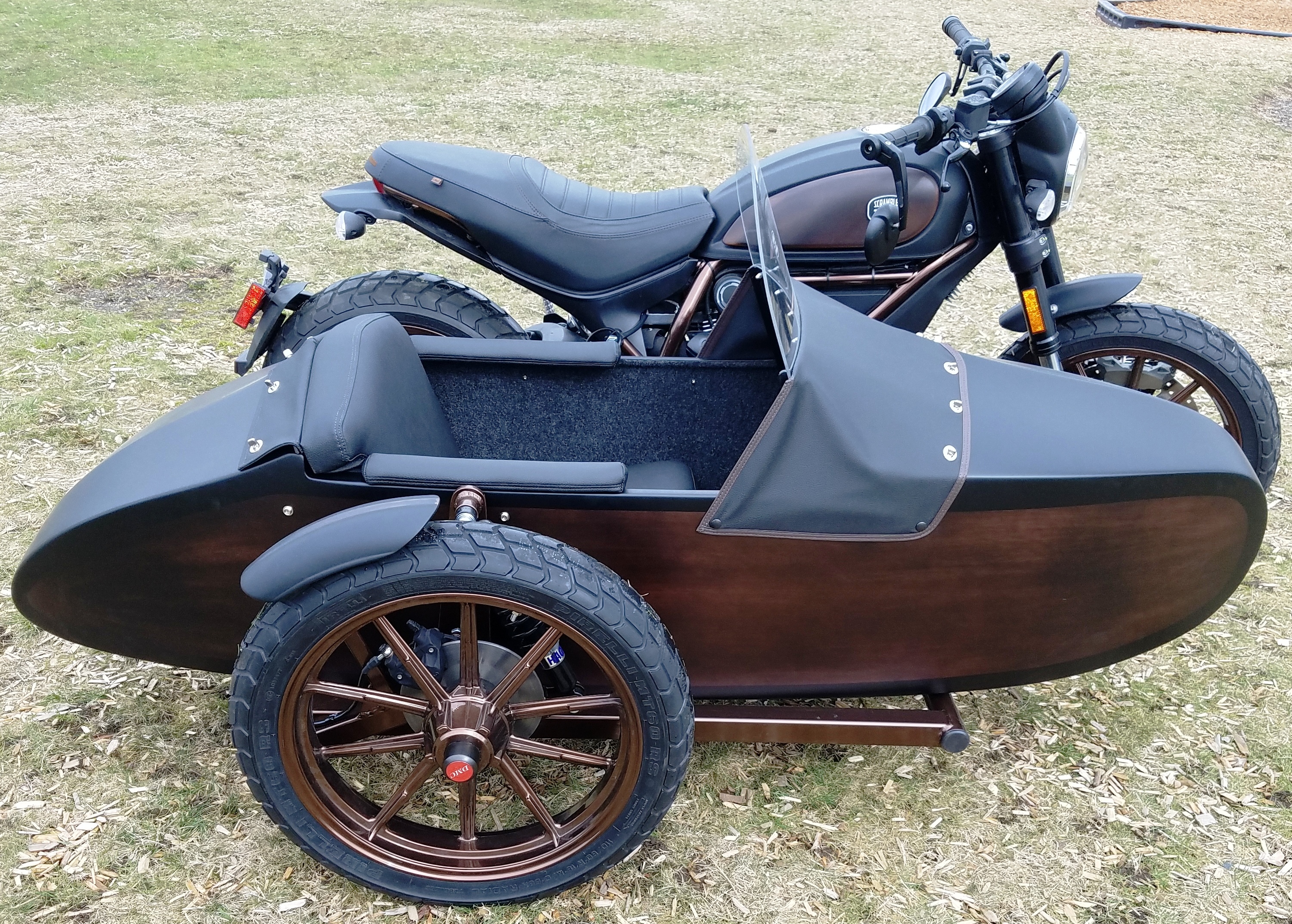Here are some photo's of a Ducati Scrambler we just finished up with one of our Classic sidecars.