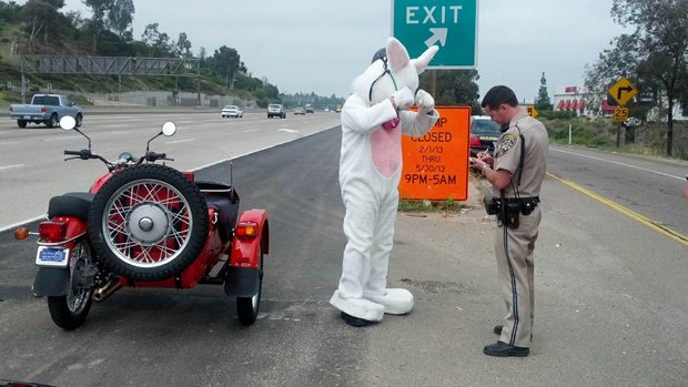 Easter Bunny pulled over by CHP