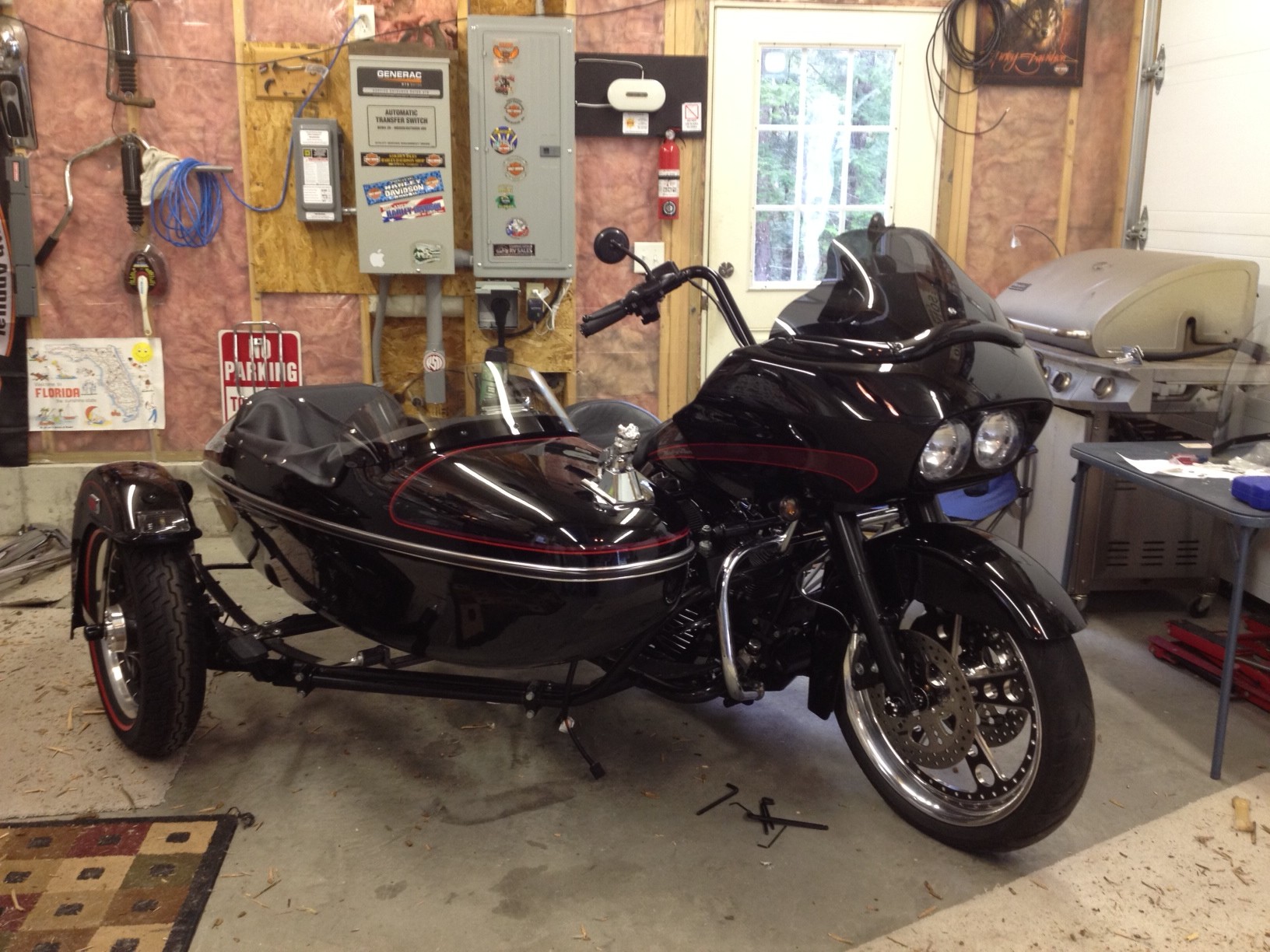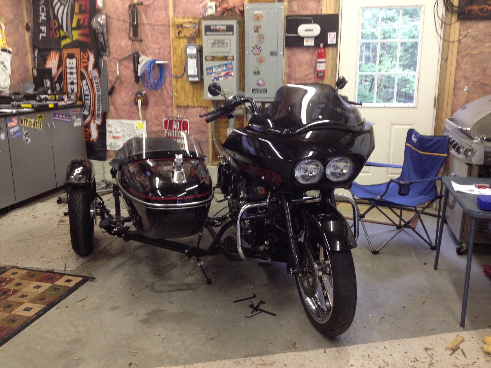 So I added a couple bad pics. First ride was kind of scary. Car pulled bad to the right. Came home and reset lean angle and also found low front tire. Next ride was MUCH better. I see what you mean by riding the hill between tire tracks with the car wheel to bring the steering to the neutral spot. When I'm off the gas the rig seems to track very well now. Got to put a hundred or so miles on it and its still new but not scary to a 30+ year two wheeled guy. Think I can get used to not having to put my feet down......