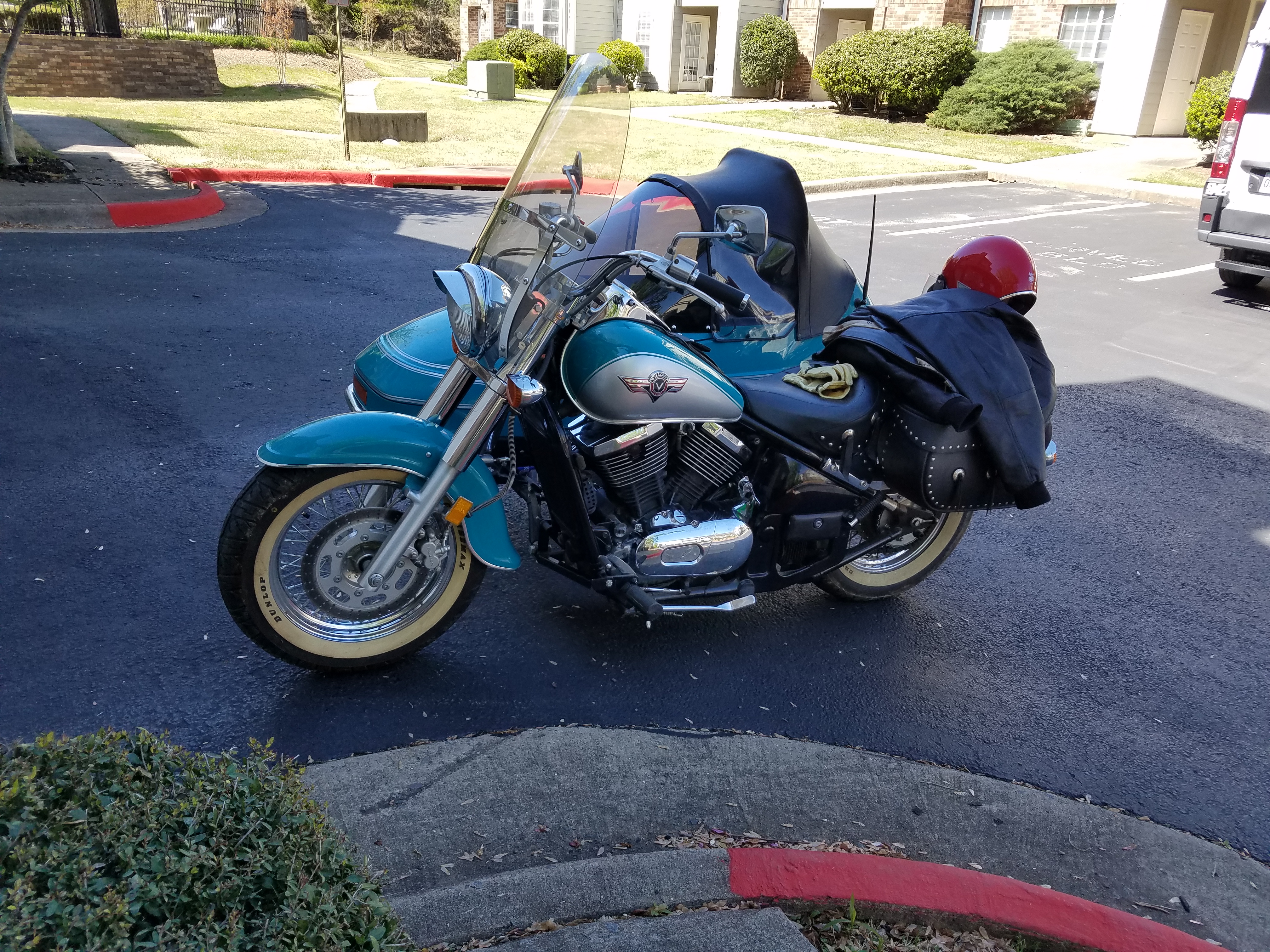 That's a nice looking rig, and a good starter rig. I've heard that the Vulcan 800 was made at the Kawasaki factory in Nebraska. But do you really think the sidecar was installed there? If yes, it would be nice to see some close-up pics of the struts and mounting points on the bike.