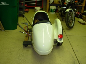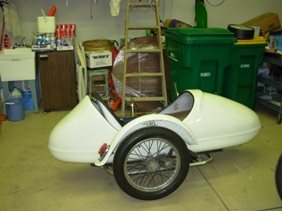 Looks like my sidecar I just purchased with a BMW 75/5. I am going to go through the bike real thorough before I bolt the car back on. The only difference I can see is the fender by the tail light is different and the wheel is spoked. I have a car battery behind the seat which should help with the ballast I hear about. I hope to get her on the road soon. At least around the neighborhood.