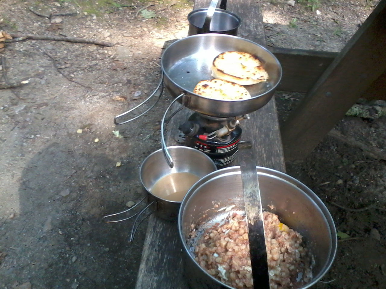 Phelonius - 7/8/2013 4:50 AM A hint for you, When the corn beef hash is almost done is the time to use a spoon and make a couple of depressions in it and crack eggs into them. Let the corned beef cook your eggs for you. Preferably a glass lid over the pot so you can see when they are done to your liking.