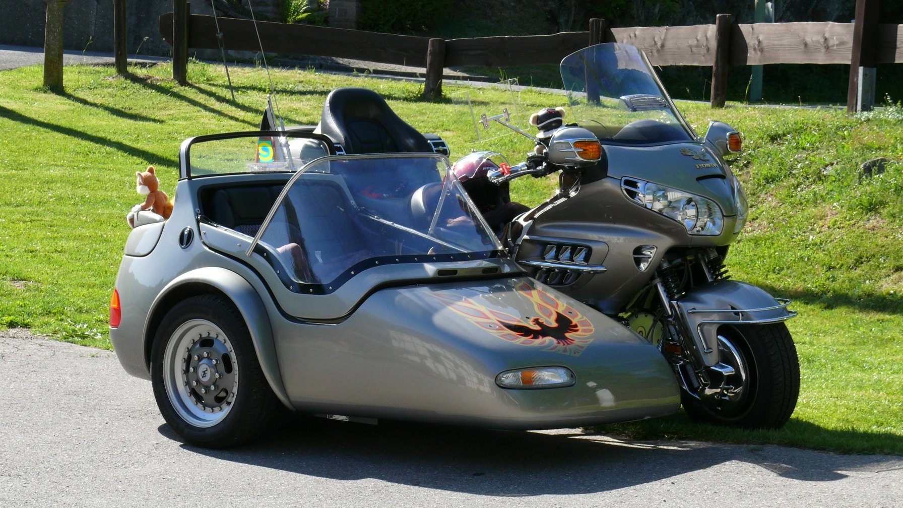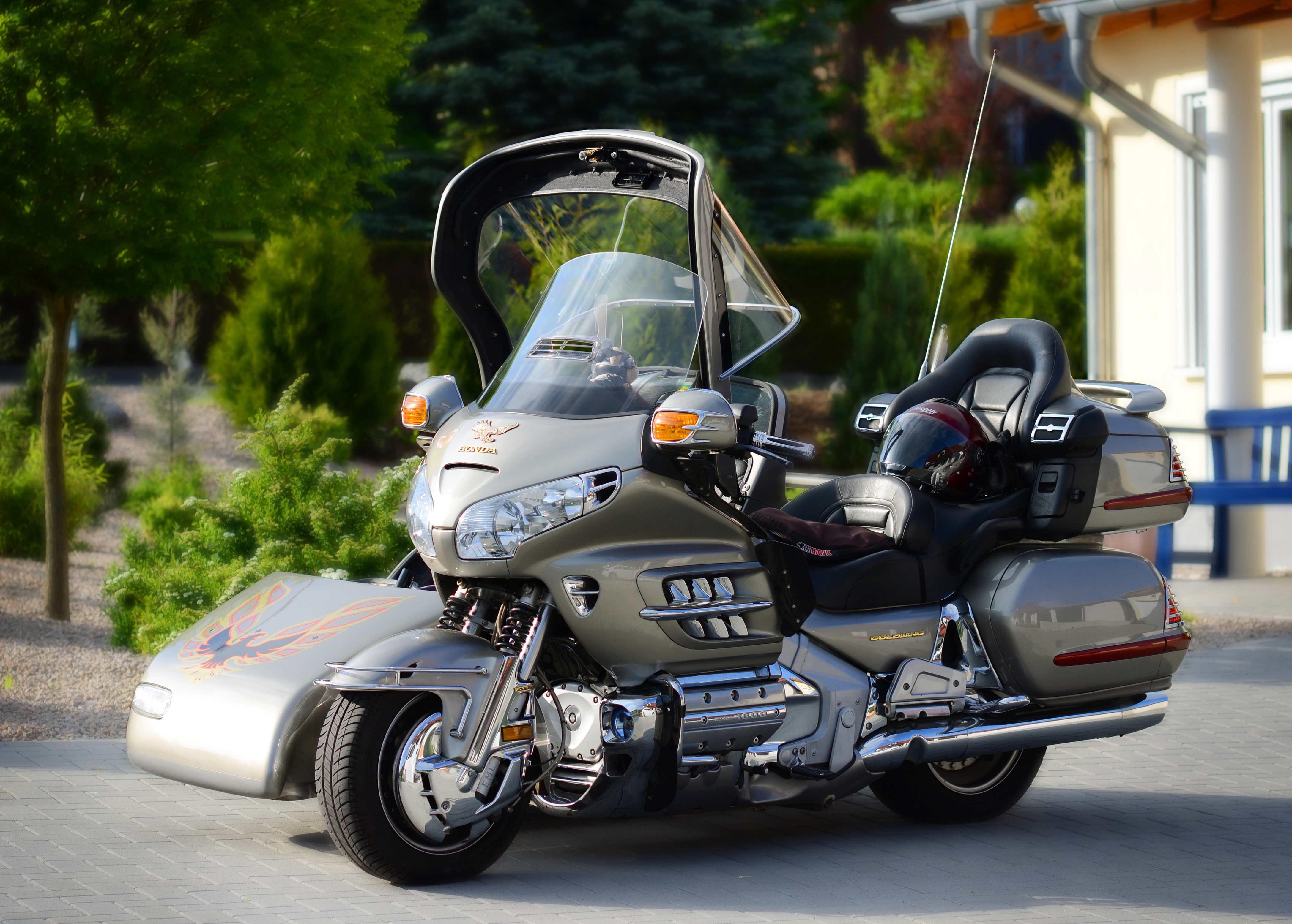 Please forgive my ignorance, but what's the huge deal titled up above your 'Wing fairing?Yep, great job. My rig is now covered with a deep layer of oak & pine tree pollen. Jersey, that's the front-opening hatch on Sigi's EML GT2001 sidecar, standing open and welcome for its guests.