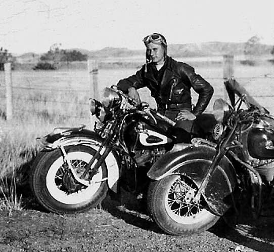 I realized that if I didn't sieze the moment my Mother would never ride in my side hack. At 86 years she enjoyed the ride and I saw a young spark in her eyes when we returned. She rode in her twin Brother Freds side car in the 40's, he died at age 28 on their birthday. My Dad, at 92, also went for a cruise. He is a WW2 Veteran, a B-24 Navigator with 36 Combat missions under his belt. (Fred Fitzgerald, my uncle whom I never met, pictured at his favorite pastime in the 40's. I now ride for him and me.) Don't put off Now what you may not be able to do later. It is always later than we think.