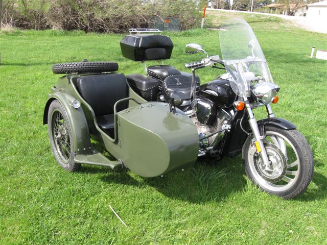 Well, I got my bike back today with the sidecar mounted. Won't get it painted until this fall or next spring. Don't want to waste riding time.