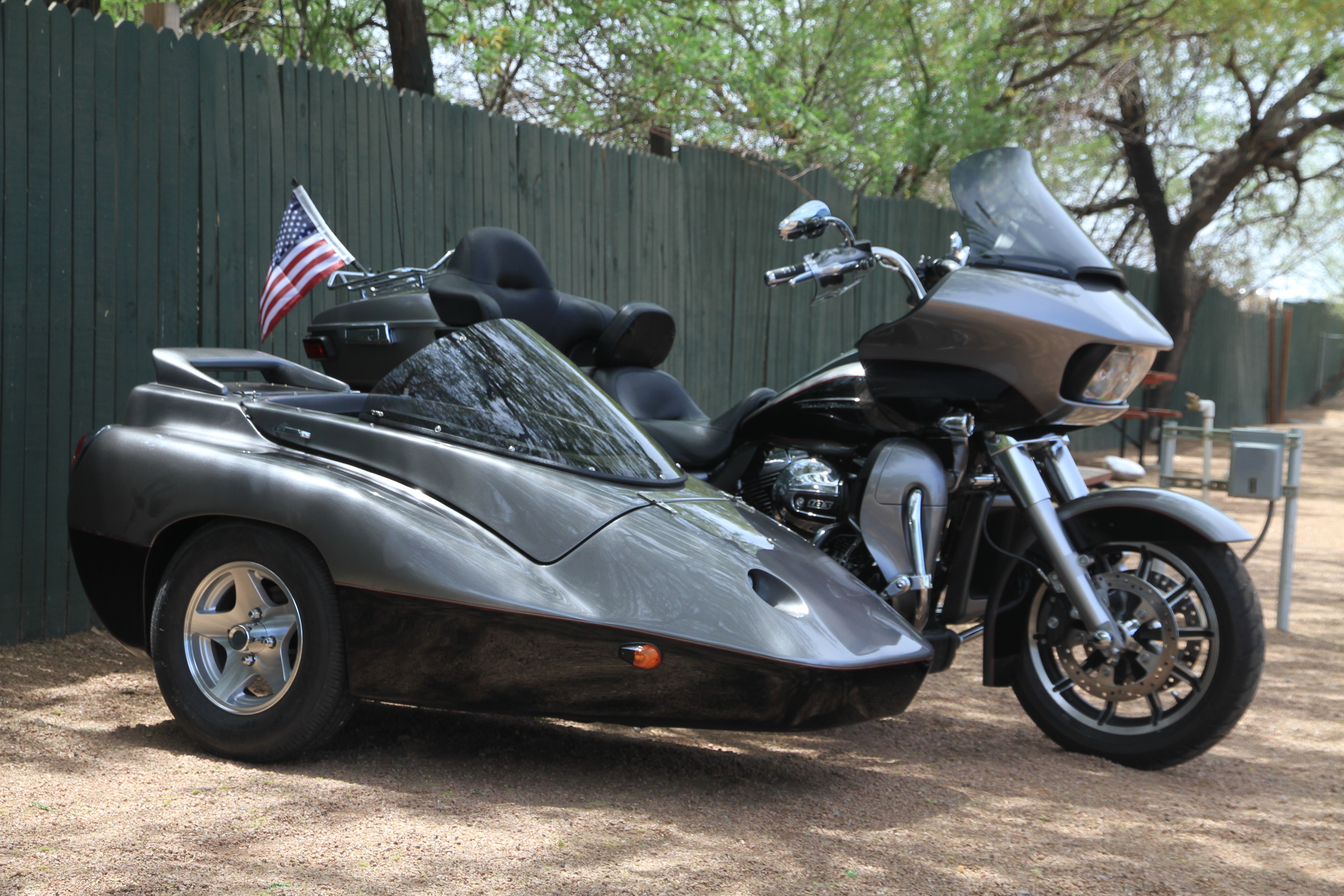 The tug is a '16 Road Glide Ultra, mostly stock but with Steerlite triple trees and just a few minor mods for a little more power and comfort.