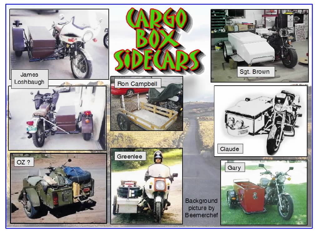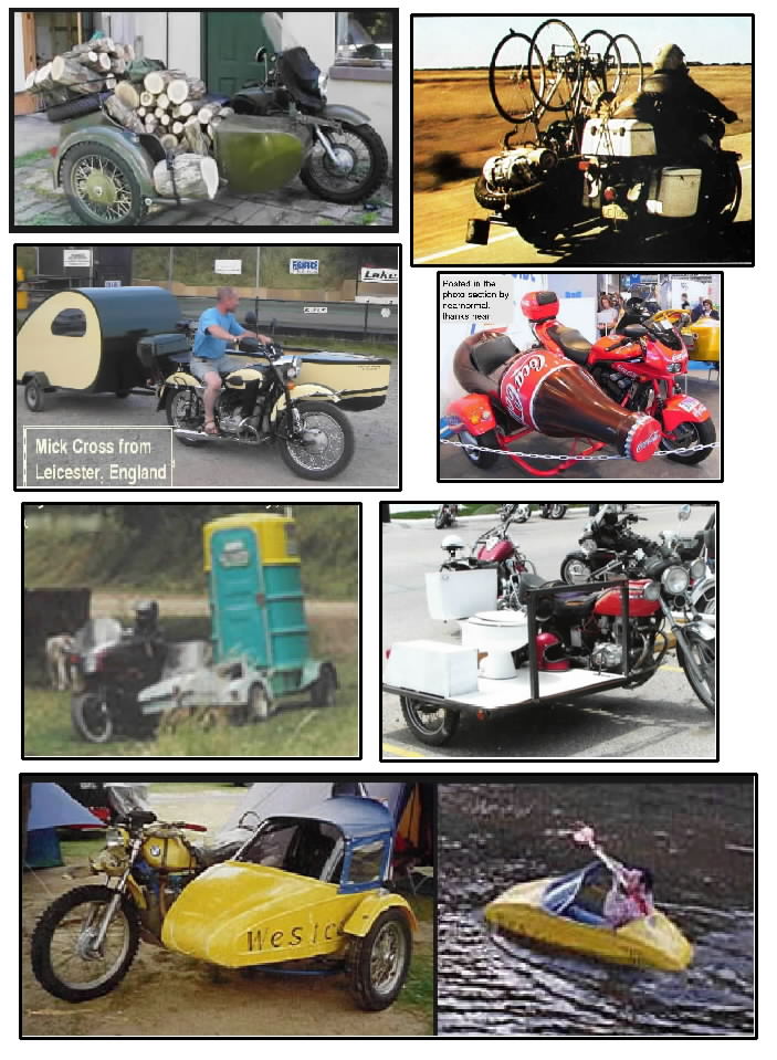 I briefly looked at sidecars for loading LPG tank & rigging pin-pull seperation spar mounting on metal Ural car. Sidecars are mostly designed to haul people, & while some with rear hatch might assist entry of LPG tank (I'm considering between 30 to 70 liters), car body upper elevation with contour makes spar mount fab' more than I'm inclined to deal with.