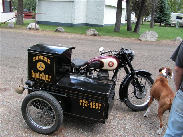 This guy has a custom built sidecar he used in a propeller repair business. (see attached)