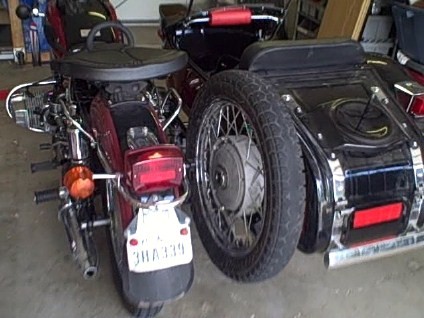 At another site I have a discussion going regarding the placement of my spare tire on my Ural. I was changing a flat tire recently and stood back away from the rig to look her over. I hadn't really thought about it before, but the styling of the Ural Troyka hack is actually sort of nice when the spare and the spare carrier are removed. It got me to thinking about possibly moving the spare to the rear, inboard side of the hack and not having it mounted flat on the trunk lid, as is traditional. Some simple bracing and the thing actually works well and is functional.