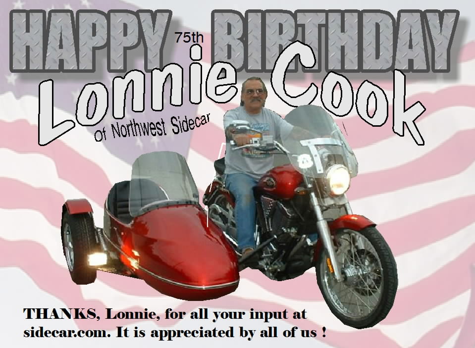 Happy Birthday, Mr. Cook. Thanks for all the information and wisdom you've imparted to me and others about sidecars...you provide a great service and your willingness to help is really appreciated...