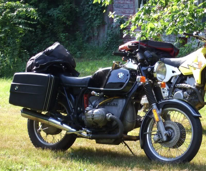I have been riding since '71' on many different bikes but this is my first Hack Rig. I have a total of eight bikes, six of them are what I call 'Orphans' looking for repair. The two bikes I try to keep tags on all year are the '77' R75/7 BMW and the '73' Moto Guzzi 850 Eldorado. All the rest are either BMW or Moto Guzzi with one vintage Harley that requires a hole sawn through my cellar wall. ( Another story)