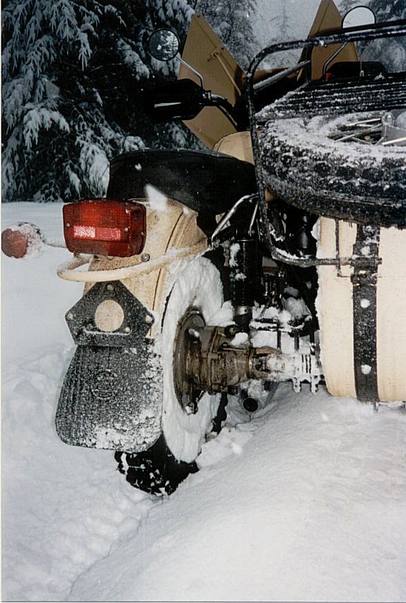 going around the front tire.No electric starters.At 10 below it took a lot of kicking to get a 600 ccm Zundapp or BMW started.I had a lot of fun.