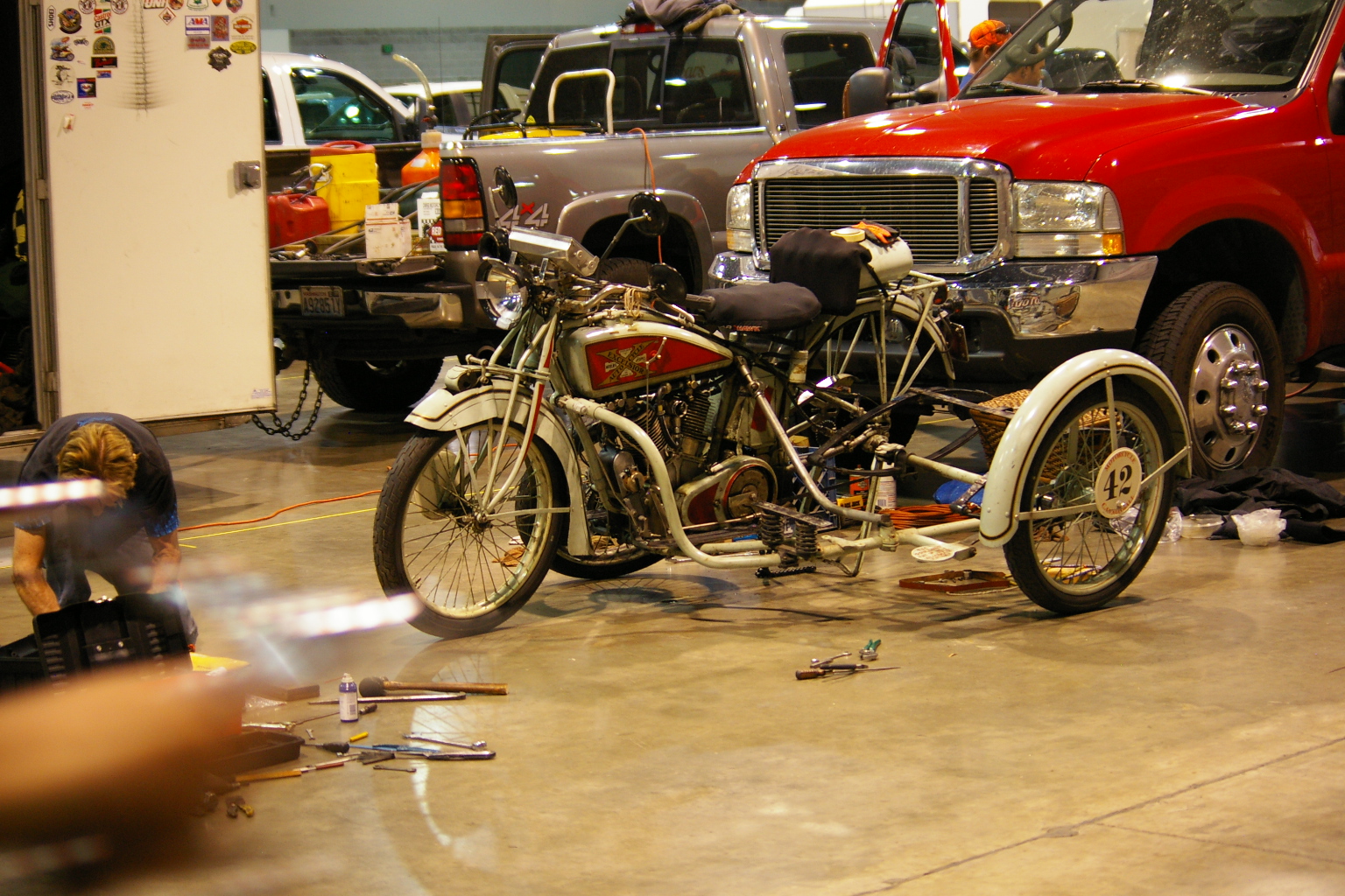 There was a similar Excelsior rig participating in the September 2010 antique bike cannonball run. Here are some pics from Hot Springs, Arkansas: