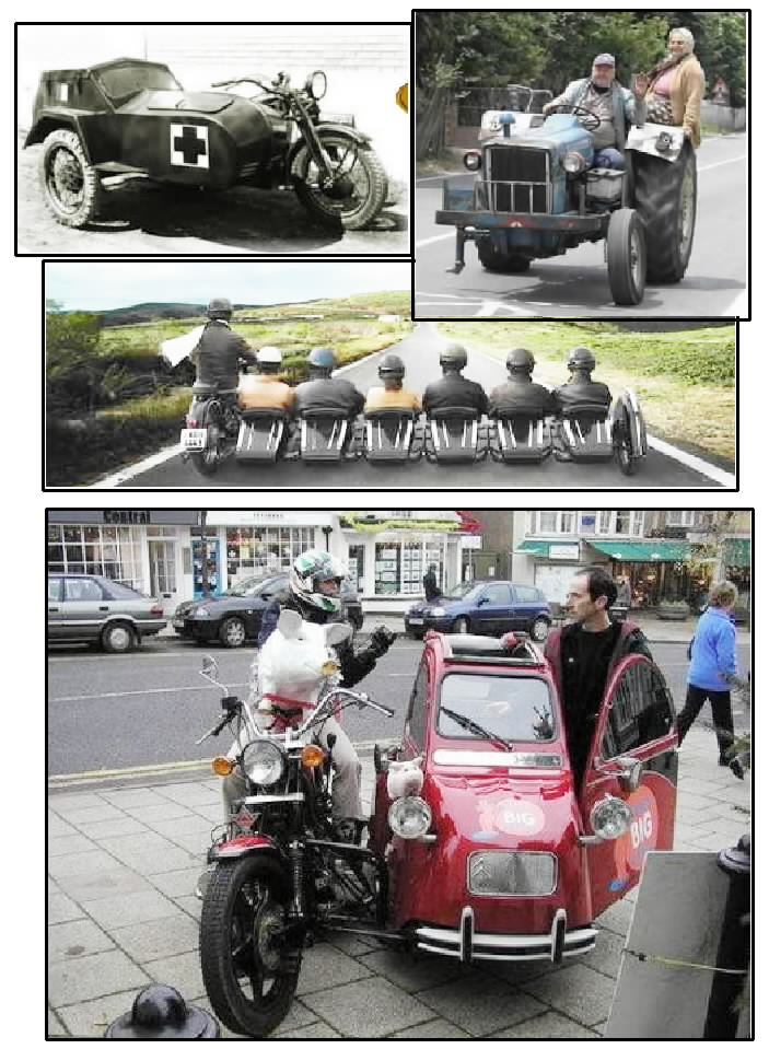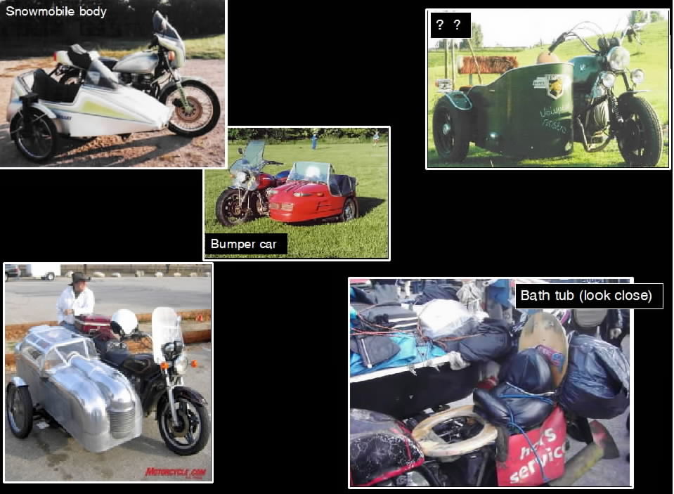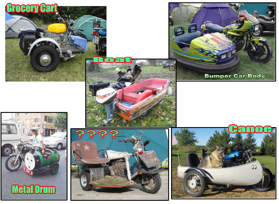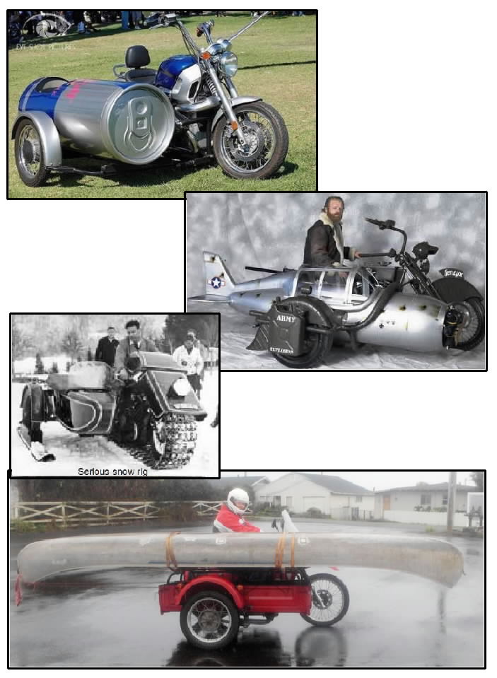 I'm almost embarassed to say I know the owners of two of these. Rev. Donnie, an SCT and sidecar.com member owns the raider snowmobile rig, and the canoe one is up here in Stevens Point. ?