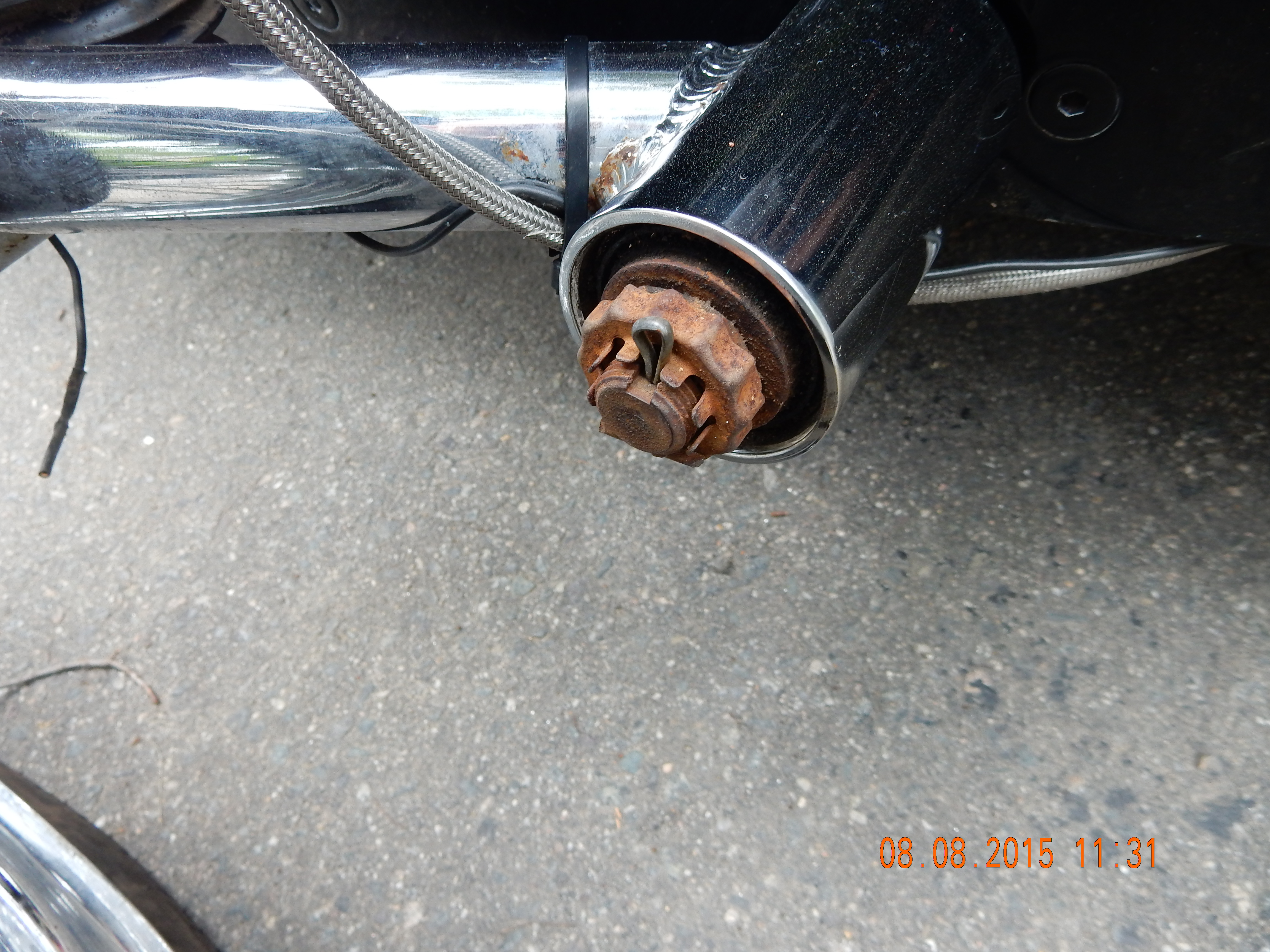 That castle nut/washer thingie sure looks like something cobbled up after the fact. Motorvation would not leave something like that in plain steel to rust! I would make, or have made, something a bit more visually appealing, or smooth the welds in a lathe on that one and have it chromed.