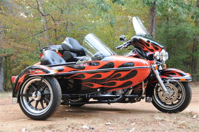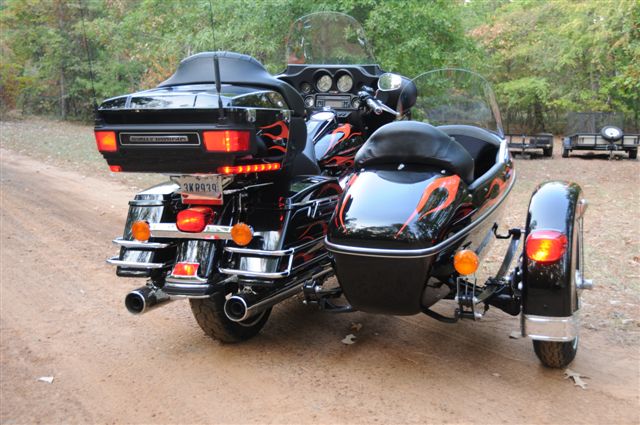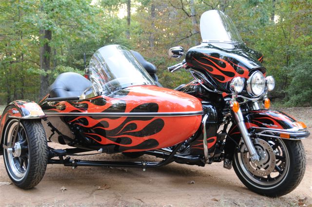 Picked up my 07 Flhtcu/Sidecar, it's a real Beauty. The ride home from Dallas was "interesting". It really handles better than I thought it would. But, the "pucker factor" was alive and well a couple of times! Anyhow made it home without bending, breaking or tearing up anything, so in my books that's a positive.