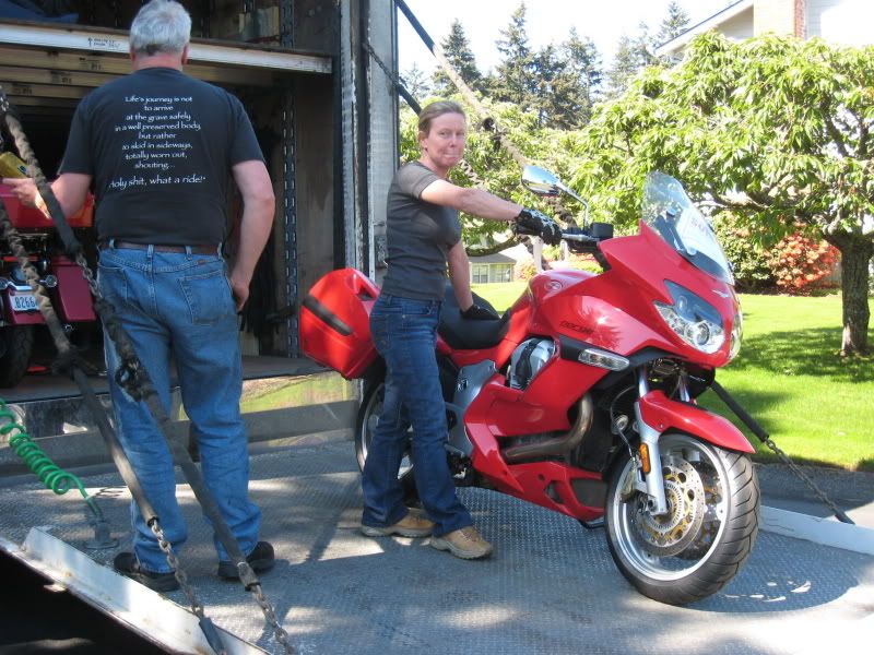 I've used Haulbikes three times in the last 10 years. Excellent, as long as you are not in a hurry. They pick up your bike the next time their truck is in your area and take it to their central warehouse. Then they put it on another truck when they have one going in that direction. Email and voice communication is good, they only haul motorcycles so they talk "our" language, and you don't have to drain the gas tank, disconnect the battery, remove the mirrors, or any of that other rigamarole the other shippers make you do. Also, they bring it right to your door as long as the street is big enough for their truck. Here's my 2007 Norge arriving a few years ago--