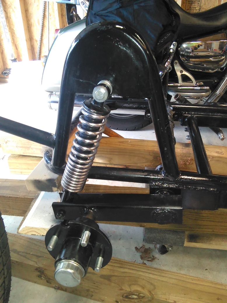 new swingarm in place. just a couple hours and she's not naked any more!