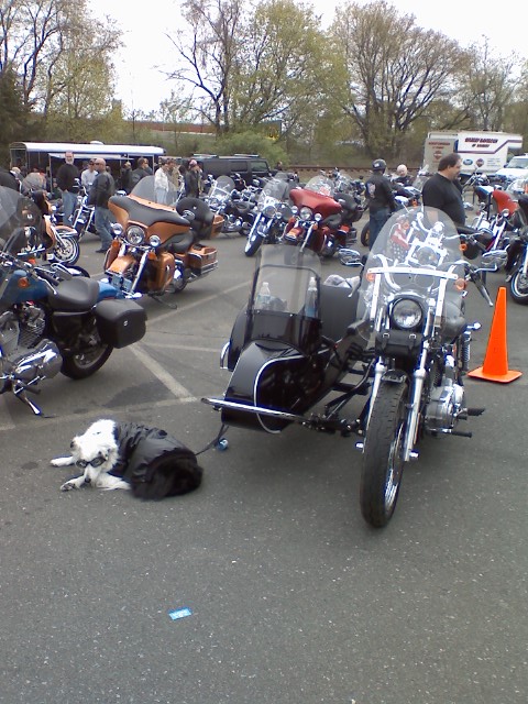Thanks, BTW July 4th, 300+ Harleys assort bikes straight pipes you get the noise, Nikita sleeps next to the bike and in HER car...but light one firecracker...she is a wreck, go fiqure...also on a run the bikers behind me flaged me down they thought my dog was popped out of the sidecar, nope she was snuggled comfortably asleep on that chilly morning!