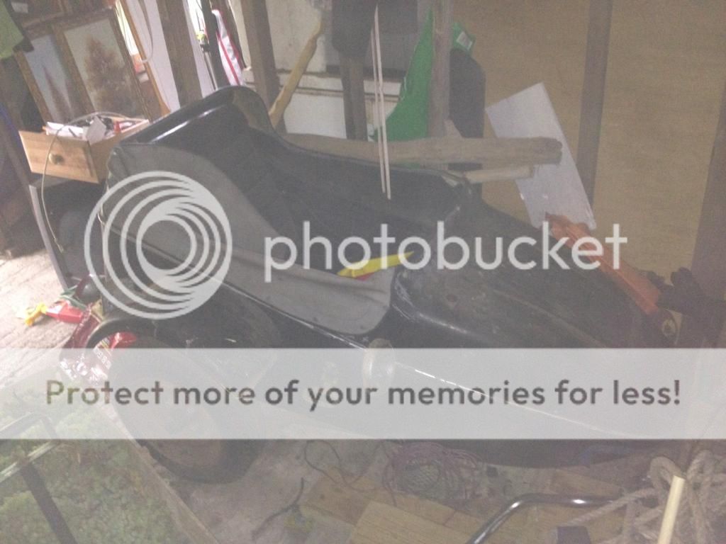 Hello everyone. I came across a sidecar that I thought would be a fun restoration project. Picked it up yesterday and discovered it is a Motovation, constructed in 1979. Carpet and interior need some work and it's obviously been poorly painted (lots of peeling from poor prep work). Fender is cracked too. There is an auxiliary tank under the seat and a pump to gas up the bike on long trips. It also has the cover with it in pretty good shape, just needs a few snaps replaced.