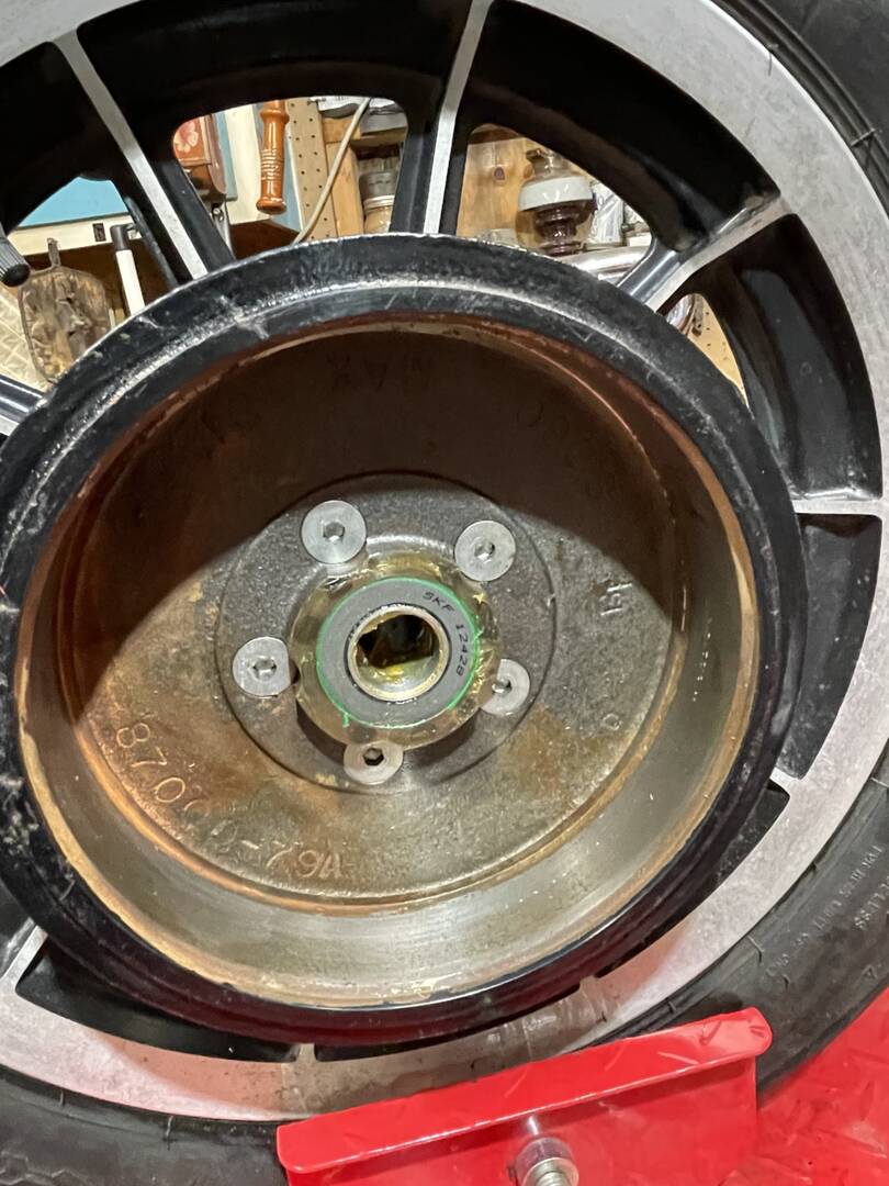 I found that my wheel would stop spinning freely when the axle castle nut was properly torqued, so I unpacked the bearing stack. These cast aluminum Harley wheels use two Timken bearings. The smaller outer bearing looked like it was packed in mud ☹️. The larger inner bearing looked good. Using a drift I tapped the steel bearing cup (race) out, to replace the bearing as a unit. Made a couple of nicks in the aluminum that I'll need to dremel down before pressing in the new race. I don't like these aluminum bores... Maybe i should use a little anti-seize to lubricate? On other applications (steel on steel) I pop the race in the freezer to get a bit of shrinkage to make the insert.