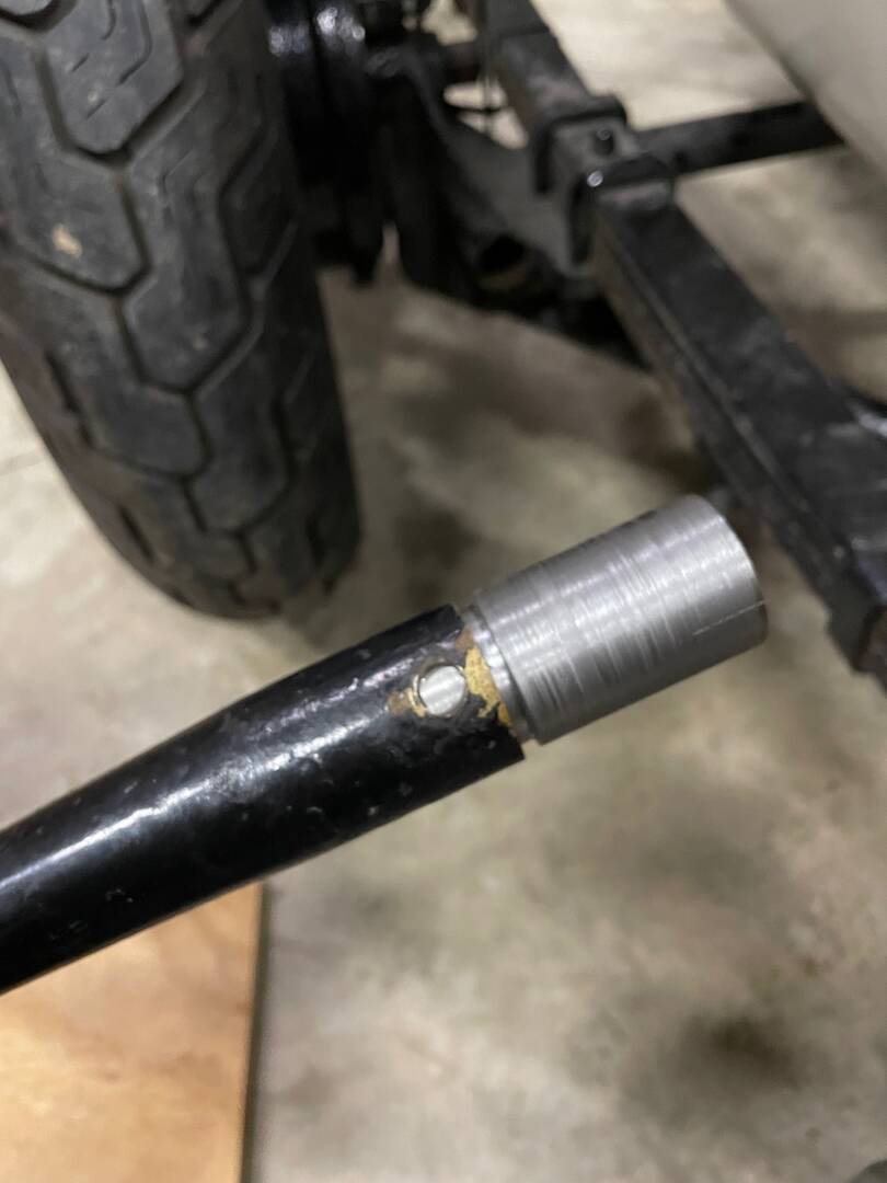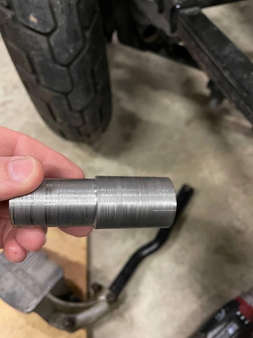 The step support tube had been hacksawed off some other frame at some point. To re-attach, I figured a solid slug with the appropriate diameters on each end would get it there. What I'm not certain of, is why the tube wouldn't simply slide in the frame hole as it sat. Only thing I can figure is since the hole was never intended to be used on this frame, it didn't get a final fitting bore to accept a tube. Anyhow, it looks like this will do the trick, once I fasten everything in place.