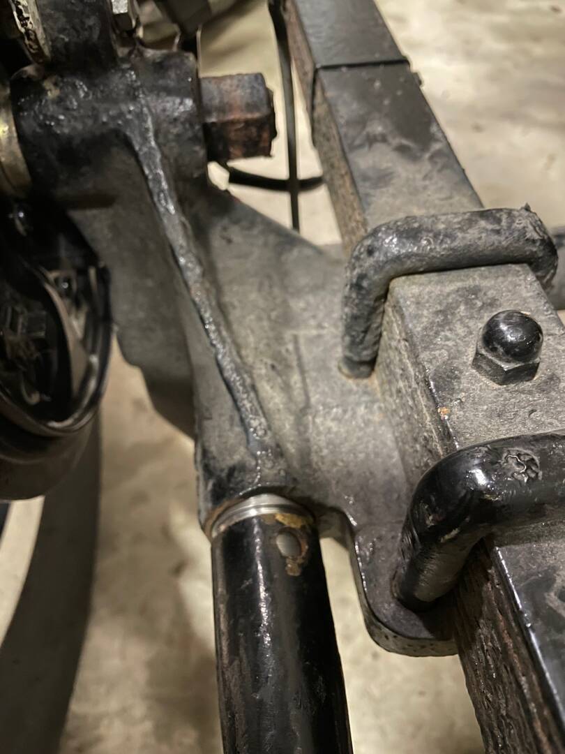 My sidecar frame is new enough that Harley no longer included the step support tube. But at the same time it is old enough that the frame casting still had the opening for the support. The tube is an odd creation that has 2 different diameters and multiple bends. Not something easily made in garage, and this was never a separately available part number from HD.