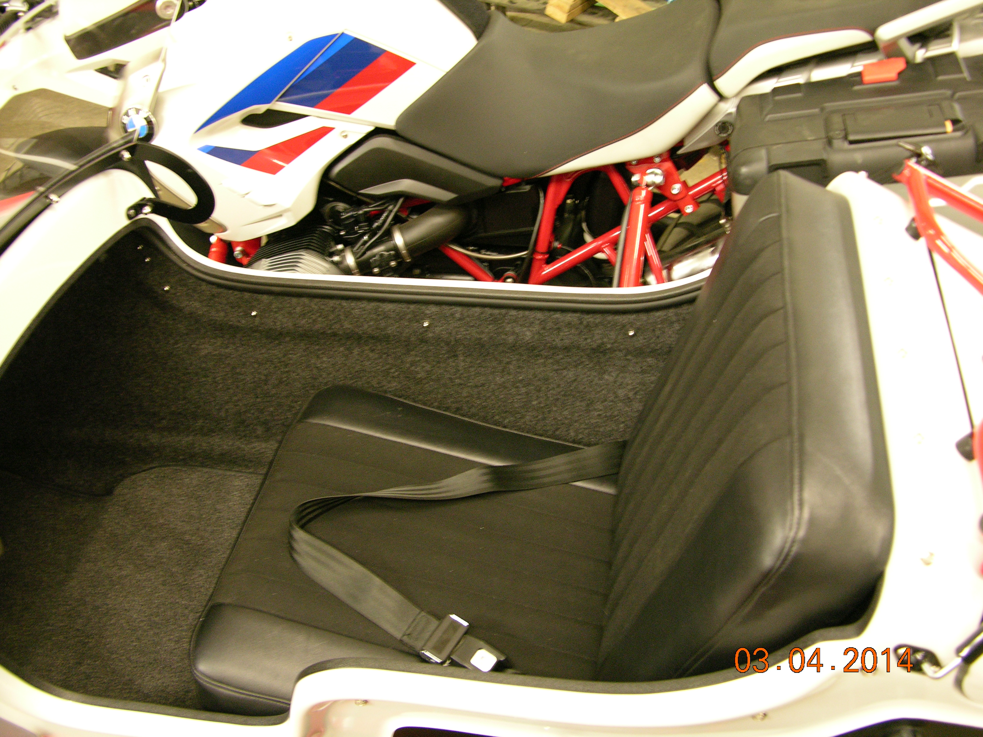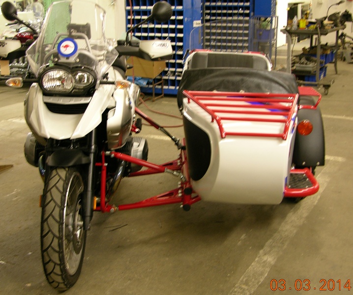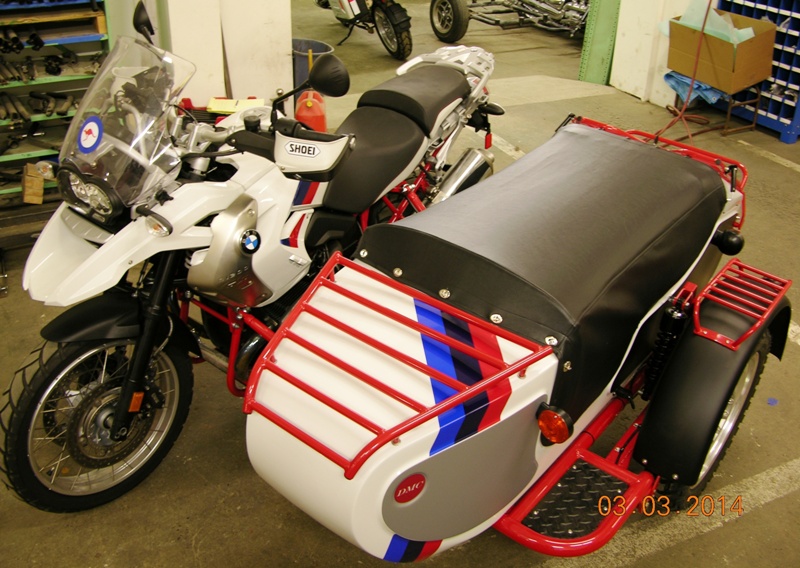 These photo's are on a 2012 BMW R1200GS rally edition. The sidecar has many but not all of our options. Many items that are options on our other sidecars are standard on this car.