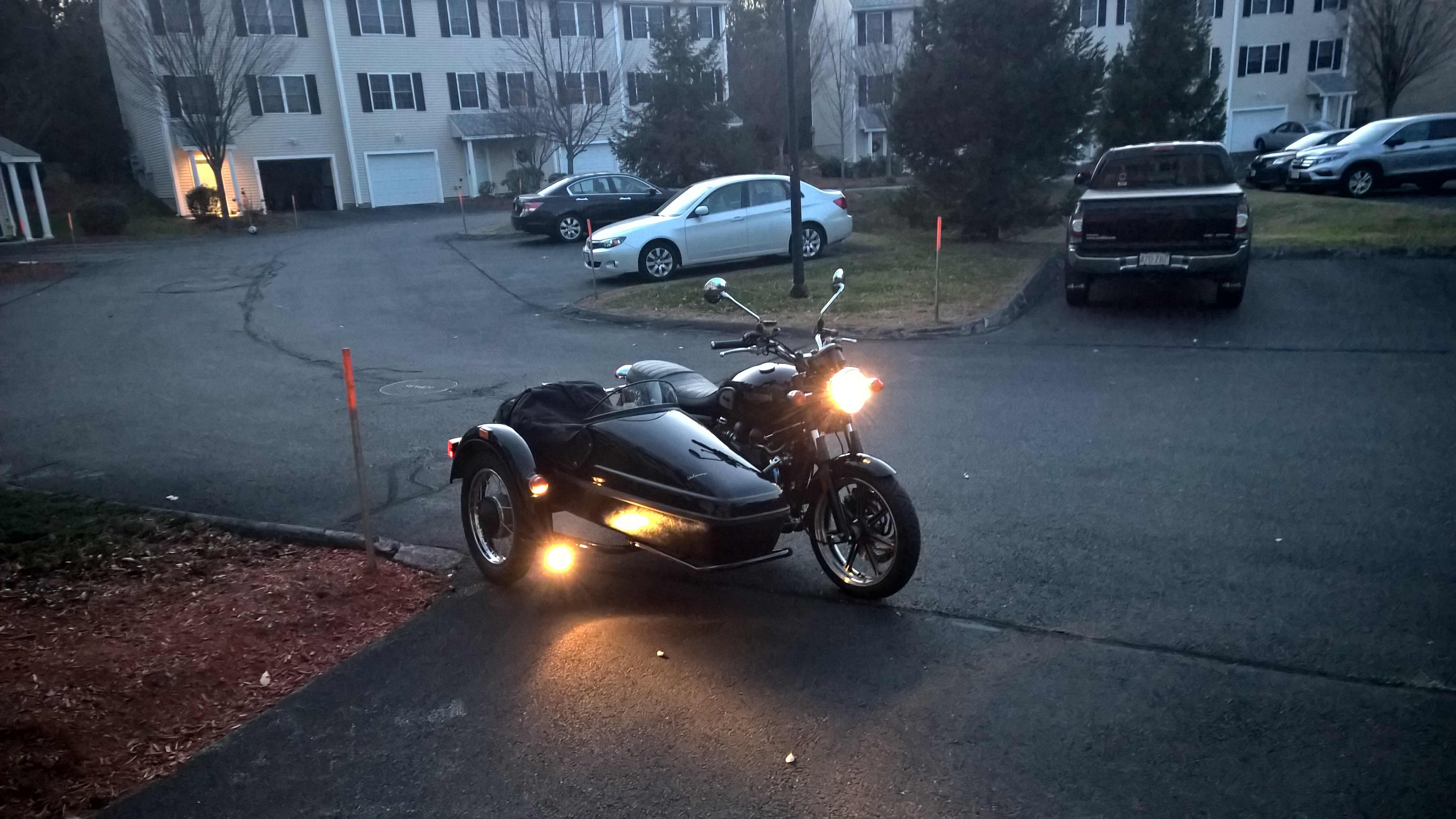here's a picture of the new light I put on the sidecar, that and some handlebar risers and she's good to go!